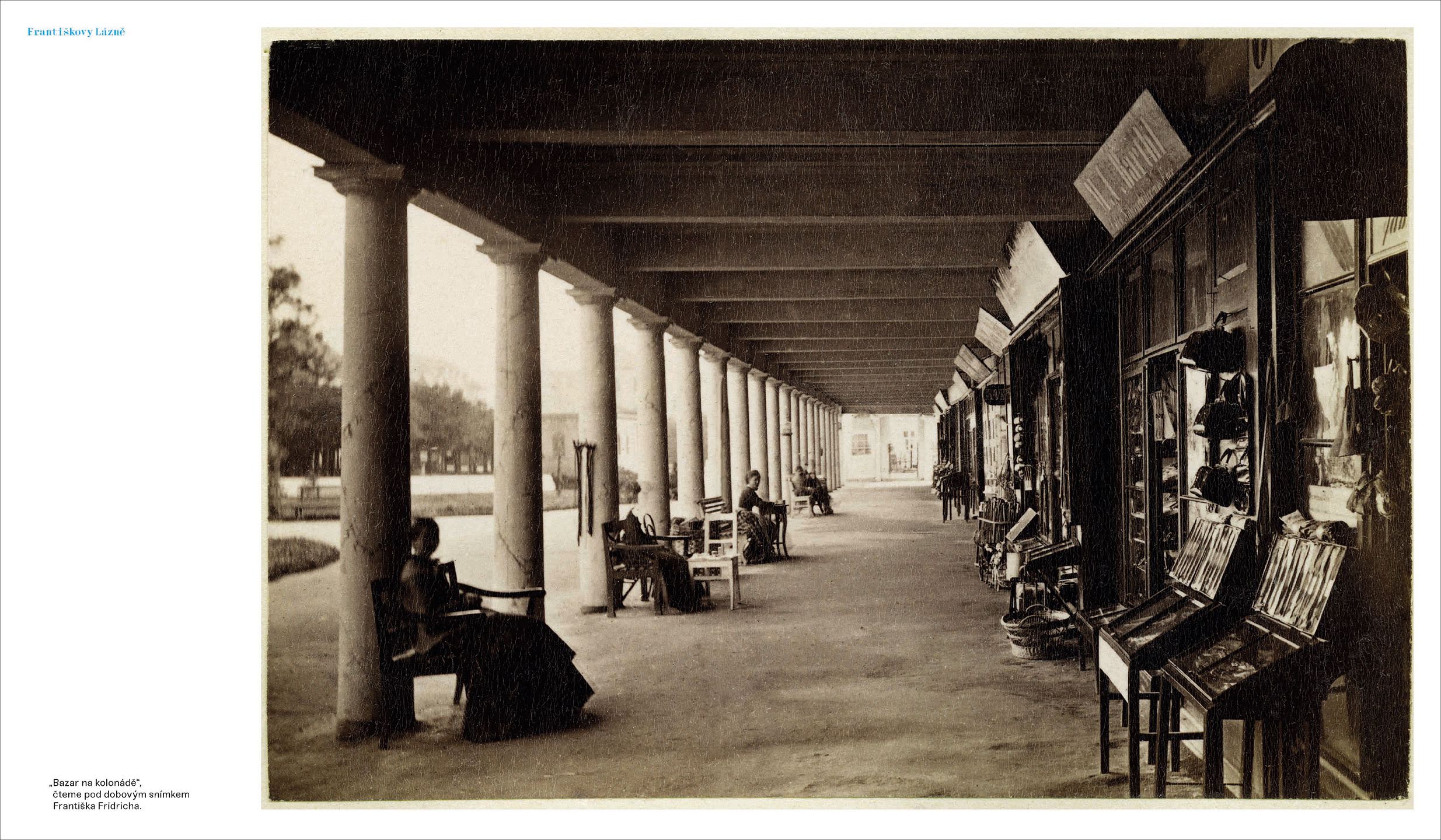 Album historických fotografií, které vybral, upravil a texty doplnil fotograf a vlastník rodinné sbírky starých fotografií Pavel Scheufler, představuje svět lázní na sklonku monarchie, kdy k léčivým pramenům mířily významné osobnosti z celé Evropy, šlechta i sám císař. Ti všichni, stejně jako i obyčejní lidé, hledali u léčivých pramenů nejen zdraví, ale také rozptýlení a pohodu. Možností měli spoustu. Malé a méně známé lázně v českých zemích nabízely tichá ústraní a klid. Překrásné promenády, kavárny a kasina v Karlových Varech, Mariánských a Františkových lázních naopak zvaly k zábavě a navazování přátelství i romantických známostí. A vše bedlivě sledovaly oči fotografů, jejichž snímky nám dnes poskytují jedinečné svědectví o tomto ztraceném světě včerejška.