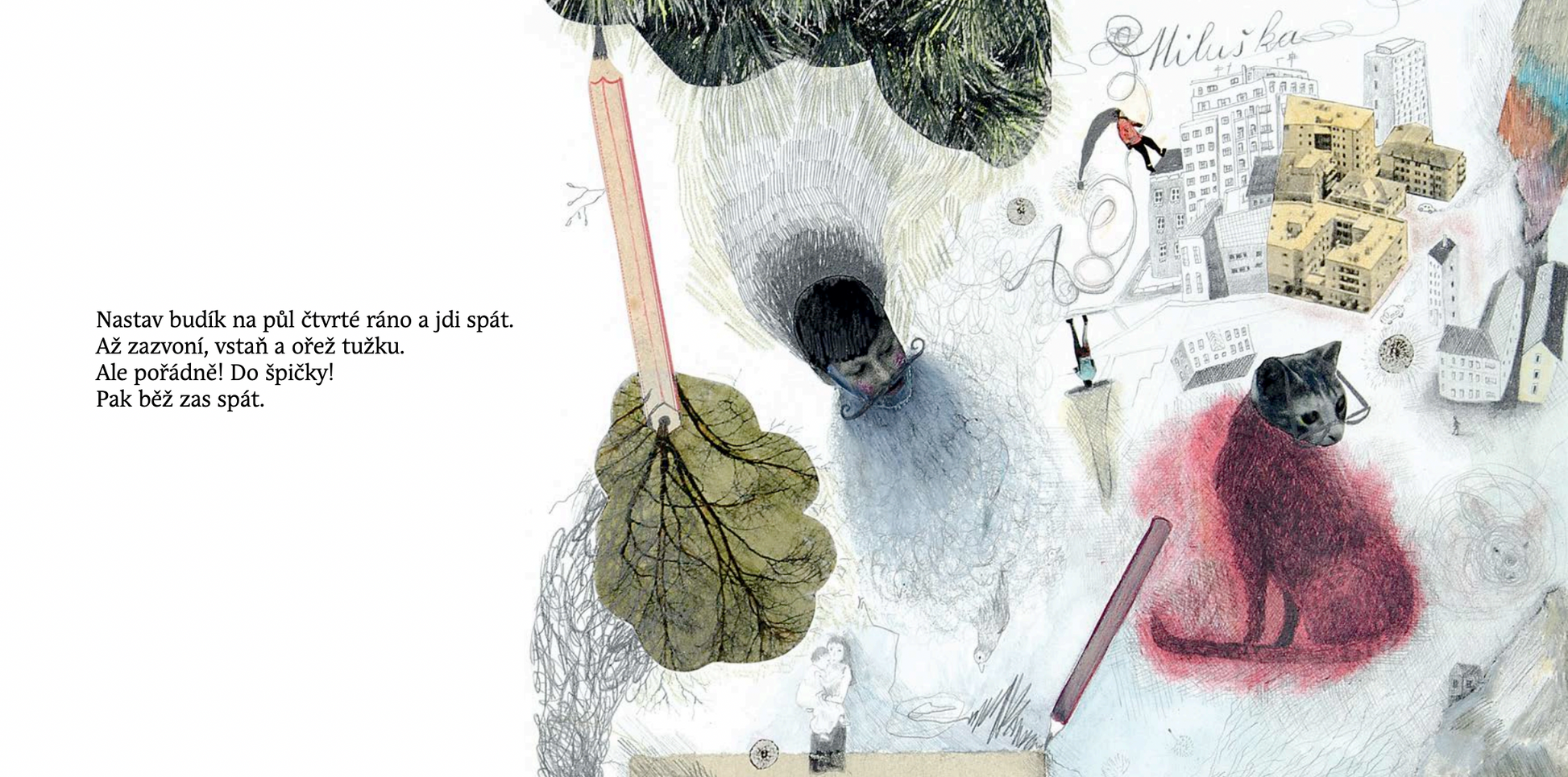 Tak si to zkus představit. Procesí mnohonožek pod kamenem. Starší holky od sousedů, jak se ti smějou, že jsi z města. Zloděje, jak se trápí s ukradenými pendlovkami. Ustaraného prodavače ze samoobsluhy. Dva zmoklé cizince ve stáji, jak se smějí a nevíš čemu. Co se zdá rohlíku, když usne před svačinou.
