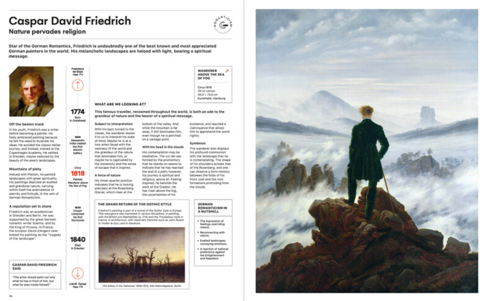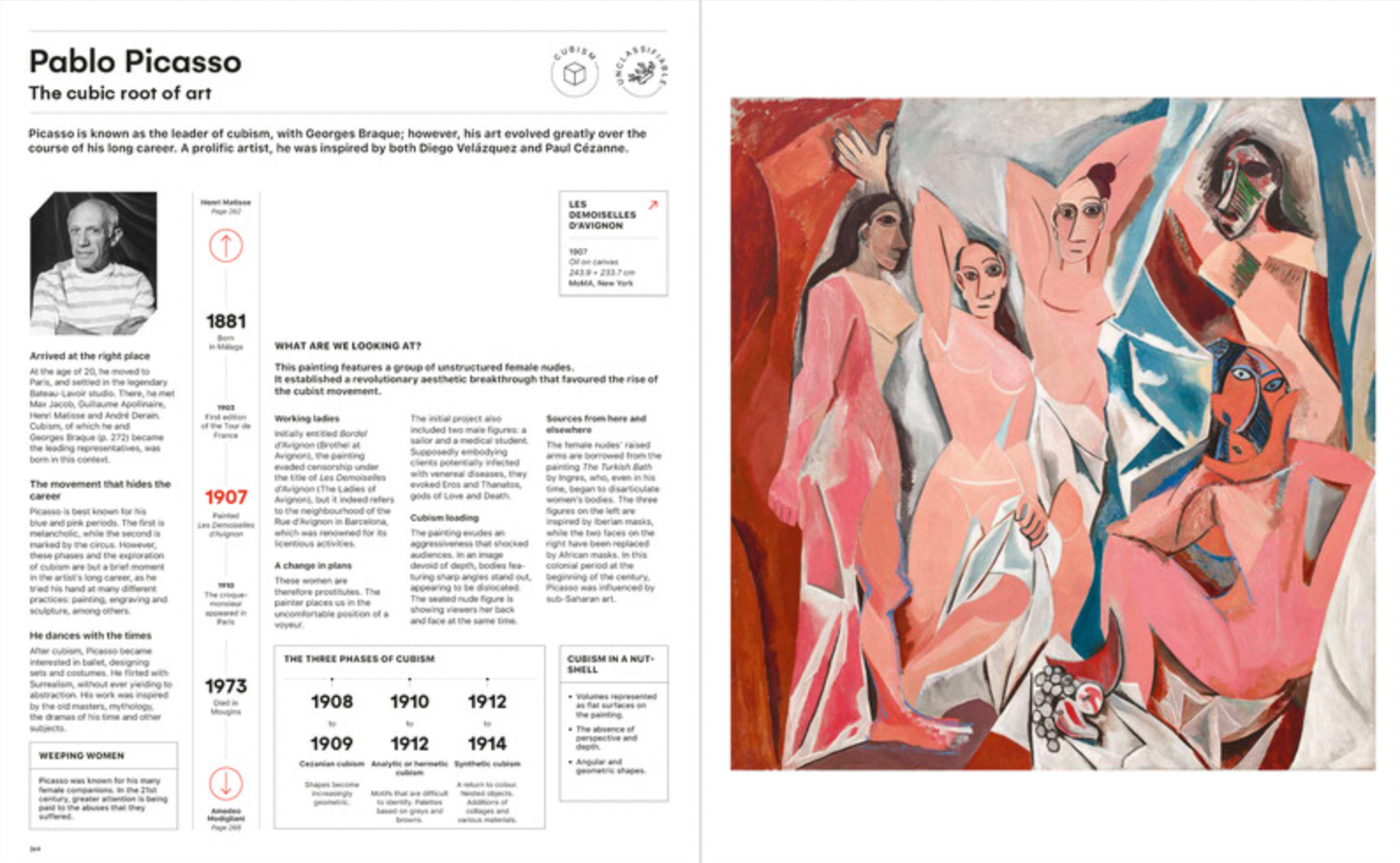 Jouneaux offers surprising comparisons between artists such as Sandro Botticelli and Mary Cassatt, Claude Monet and Joan Mitchell, Delacroix and Rubens. Terms such as Baroque, Ukiyo-e, Graffiti, Cubism, Degenerate Art, and De Stijl are explored and explained. Non-western traditions are given much greater prominence than in other art history books – Chinese, Indian, Australian Aboriginal, and African Art are all included in the timeline. Numerous women artists who were overlooked during the author’s own education are restored to the canon. Accompanying the unpretentious but authoritative texts are hundreds of illustrations, reproductions, timelines and sidebars.