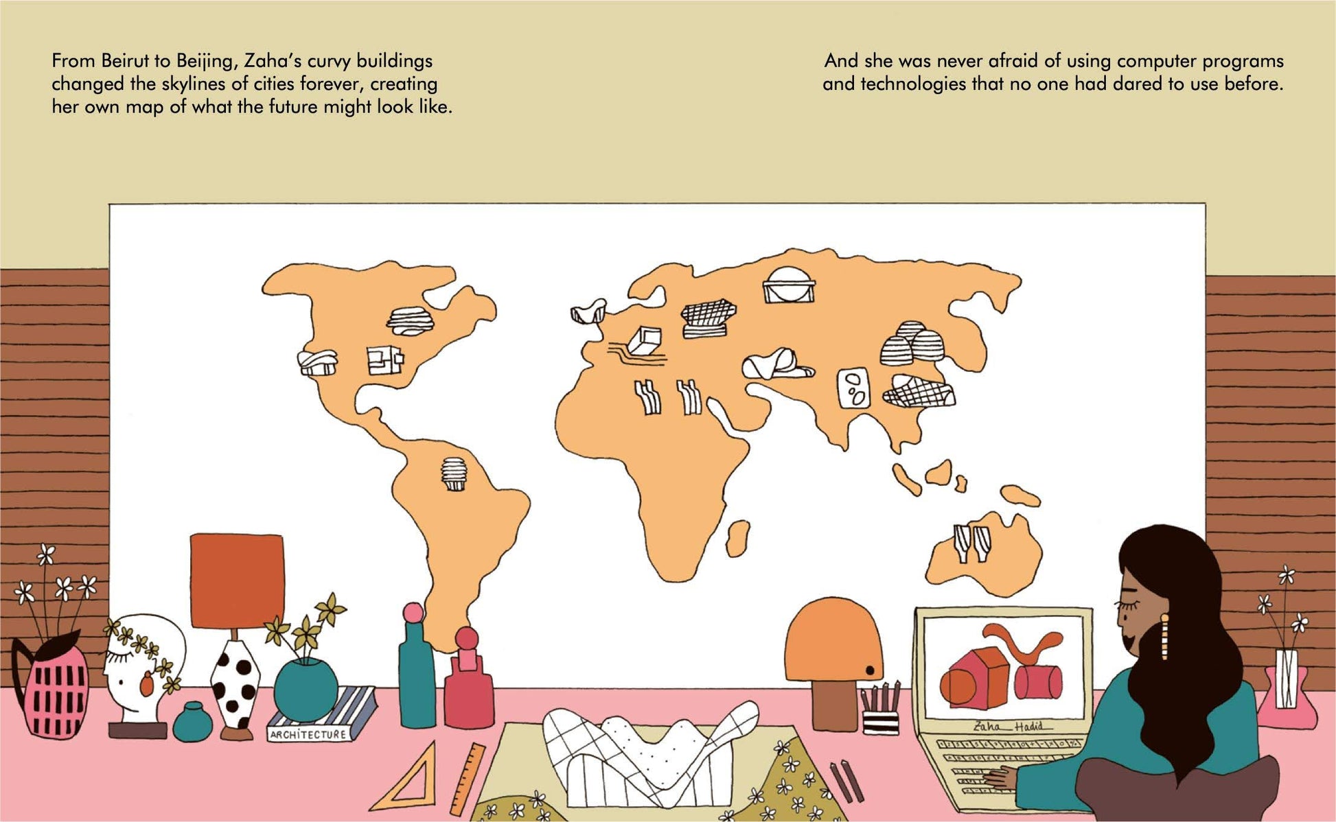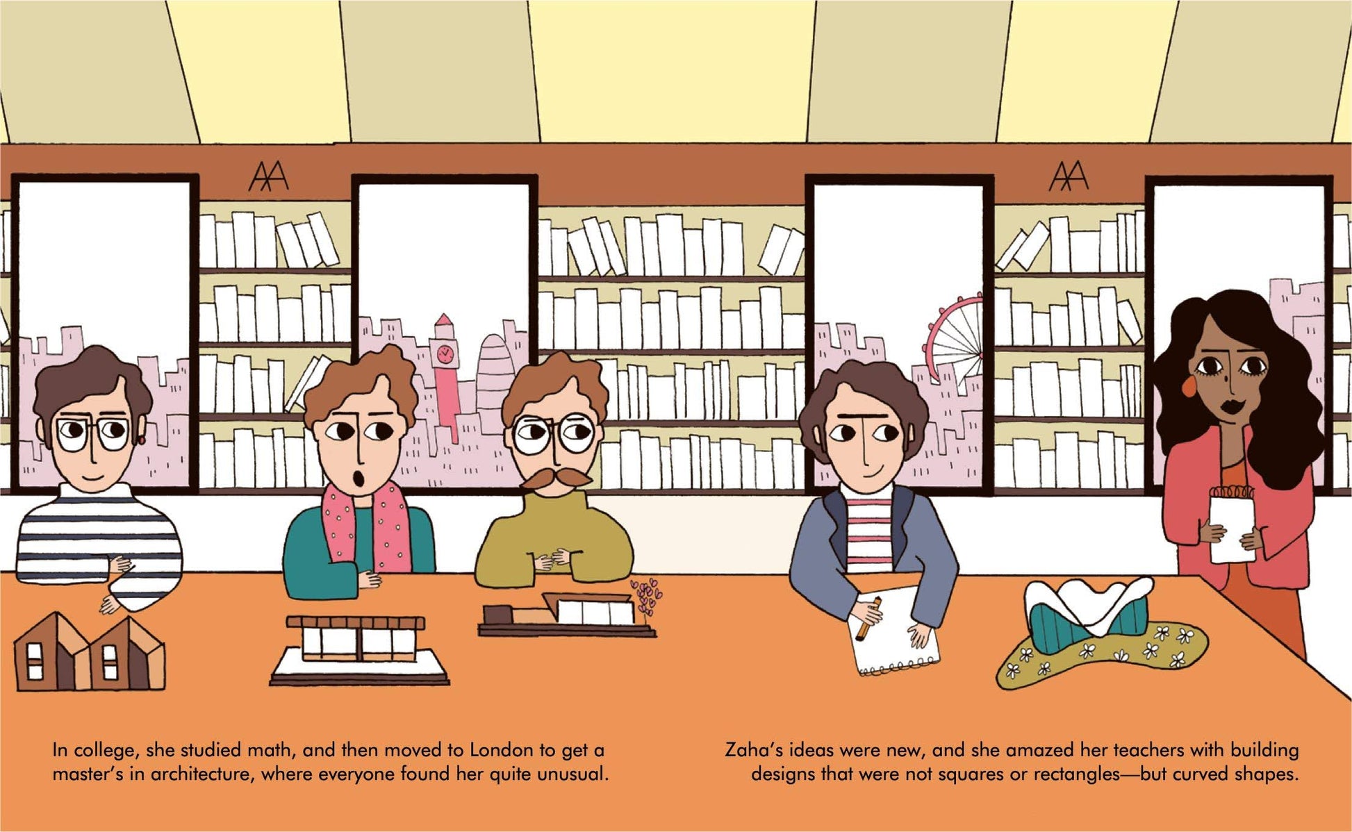 Zaha Hadid grew up in Baghdad, Iraq surrounded by music. She was a curious and confident child, who designed her own modernist bedroom at nine years old. As a young woman studying at University in Beirut, she was described as the most outstanding pupil the teacher had ever met. With her spectacular vision and belief in the power of architecture, she founded her own firm and designed some of the most outstanding buildings in the world – including the London 2012 Olympic Aquatic Centre. This inspiring book features stylish and quirky illustrations and extra facts at the back, including a biographical timeline with historical photos and a detailed profile of the architect's life.