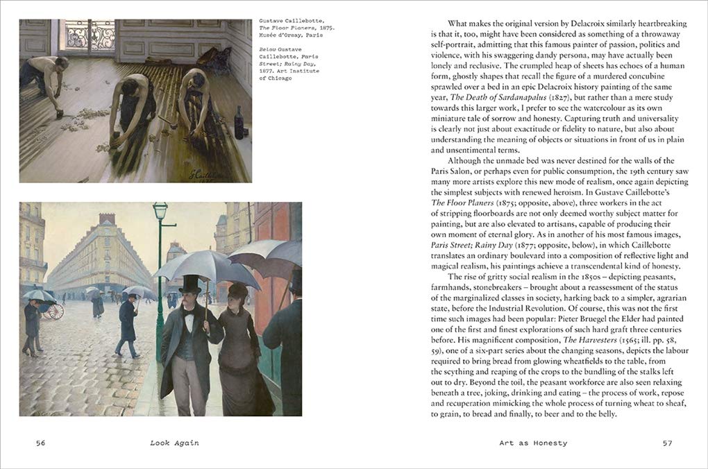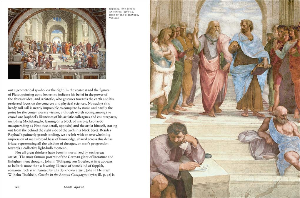 Na nowatorskie podejście Look Again ma wpływ podejście Johna Bergera Ways of Seeing , ale tutaj jest zaktualizowany dla świata sztuki XXI wieku. Kluczem do tej książki jest położenie nacisku na sposoby doświadczania Starych Mistrzów – coś więcej niż tylko patrzenie. Tak jak sztukę współczesną należy oceniać po tym, jak nas porusza, namawia i otacza, tak też wielkie obrazy świata można postrzegać jako wciągające, urzekające, a nawet uczestniczące doświadczenia.