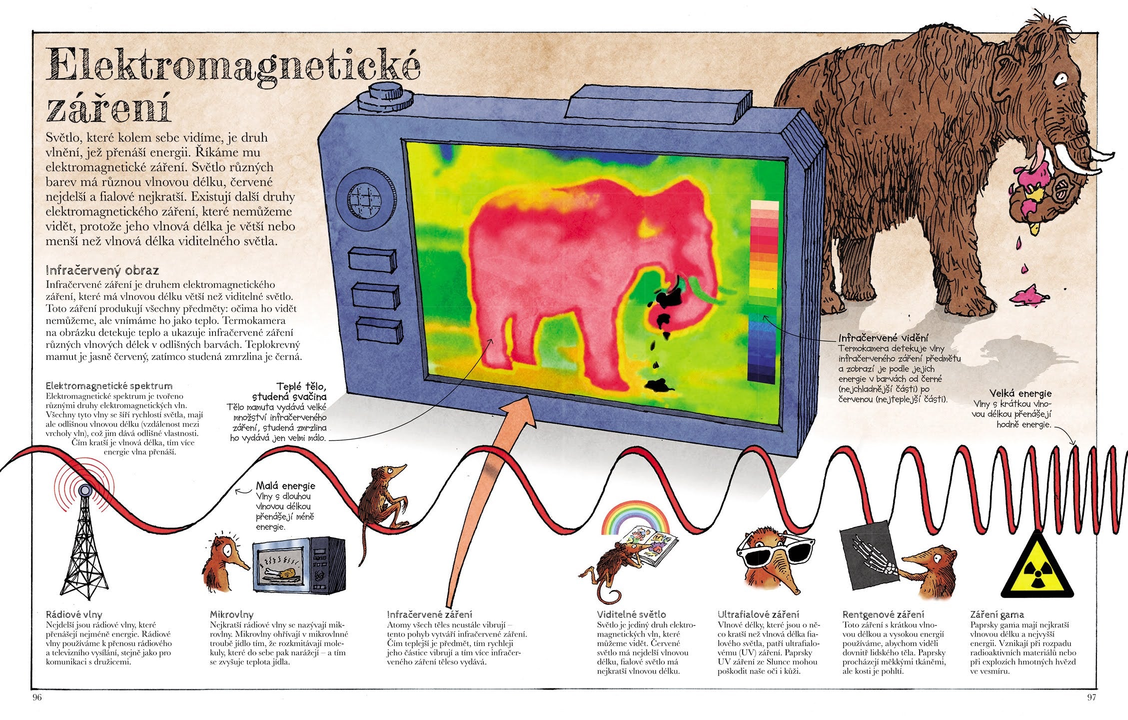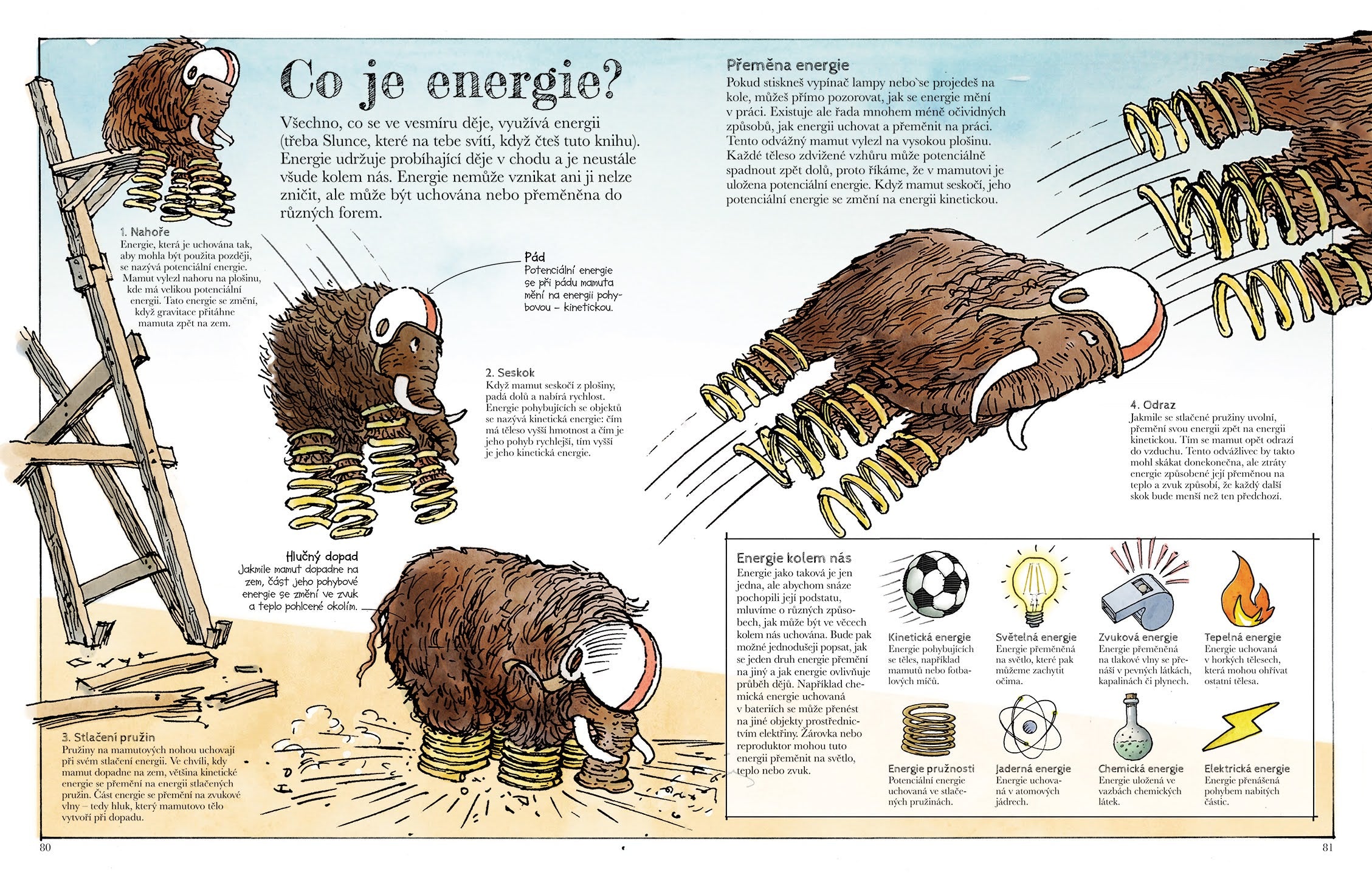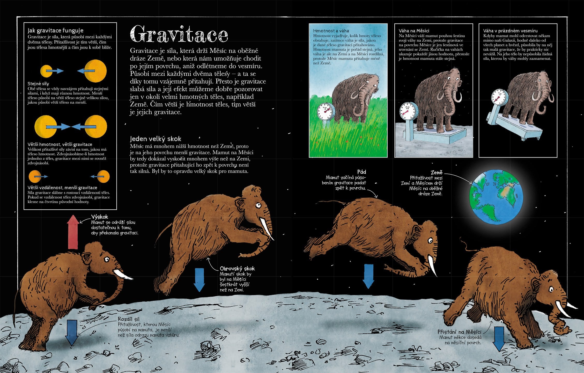 Z autorem książki Davidem Macaulaya i stadem ciekawskich mamutów jako przewodnikami po świecie nauki zgłębisz tajniki fizyki, biologii, chemii, geografii i astronomii. Dowiesz się na przykład, że woda to jedyna substancja na Ziemi, która występuje we wszystkich trzech stanach skupienia – stałym, ciekłym i gazowym. Zrozumiesz, dlaczego dwie czyste formy węgla są tak różne – diament jest twardy, a ciało stałe jest miękkie. Mamuty opowiedzą, jak zmierzyć gęstość substancji i wyjaśnią, dlaczego nawet ciężkie przedmioty unoszą się na wodzie. Dowiesz się wiele o atomach i cząsteczkach, energii, cieple, dźwięku, świetle i magnetyzmie. Razem z mamutami omówicie cały organizm człowieka, skupiając się na układzie odpornościowym, DNA i ewolucji. Zatrzymacie się także przy Ziemi i przekonacie się, jakie miejsce zajmuje ona we wszechświecie, przejdziecie się po Układzie Słonecznym i Drodze Mlecznej... Dowiecie się nawet, z czego zbudowane są ciała mamutów, które w humorystyczny sposób są i pomysłowo włączane do obrazów i tekstu rozdziałów, często tak, że ich wielkość wyróżnia się na tle innych stworzeń lub przedmiotów. Nie możesz się doczekać czytania?