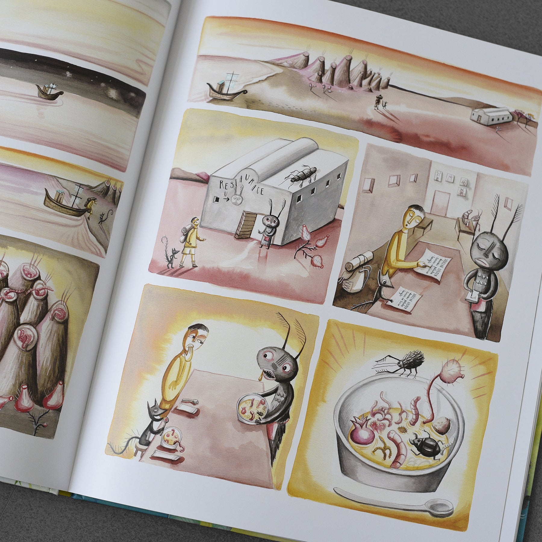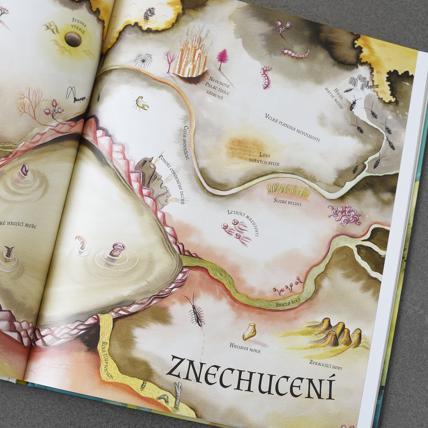 Dziecko wyrusza w podróż, która prowadzi do eksploracji miejsc w jego wnętrzu. Jedynymi słowami w tej milczącej książce są oznaczenia miejsc na mapach tajemniczych krajobrazów, które w zaskakujący i pomysłowy sposób opisują różne ludzkie uczucia. Magiczna księga przedstawia wiele odcieni indywidualnych emocji od radości, wstydu, zachwytu i strachu po miłość. Książka pełna wyrazu artystycznego przeznaczona jest dla dzieci w wieku od 4 lat.