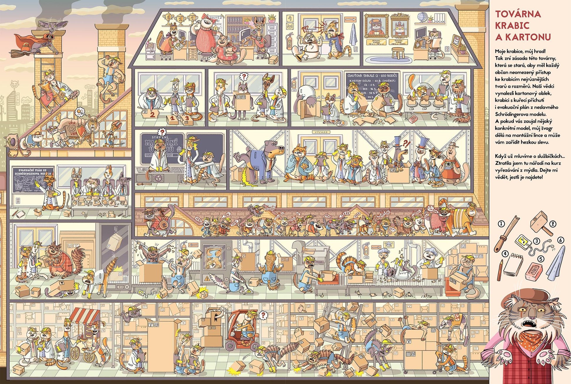 Pojďte se podívat do města koček – slavného Kočičína! Nejlepší skoro registrovaná a bezmála oficiální průvodkyně Šprota zná Kočičín jako svoje boty a provede vás od Velkých kočičích hor až do Kočkolandu. Navštivte továrnu krabic a kartonu (aneb nábytku, bez kterého se žádná kočka neobejde), v lázních se zúčastněte kurzu spaní na levém boku a v Kočferenčním centru se seznamte se slavným kočičím spisovatelem Théseem Smotkem. Můžete také využít služeb puckožichů, drbačů a mlskodajců. Všechno to má jedno ale: vaše průvodkyně Šprota ztrácí nejroztodivnější předměty! Pomůžete jí je najít?