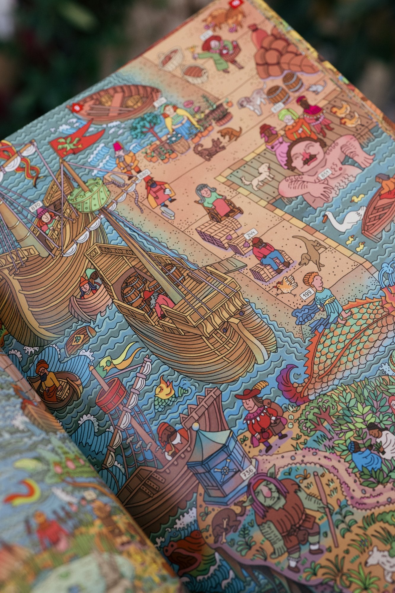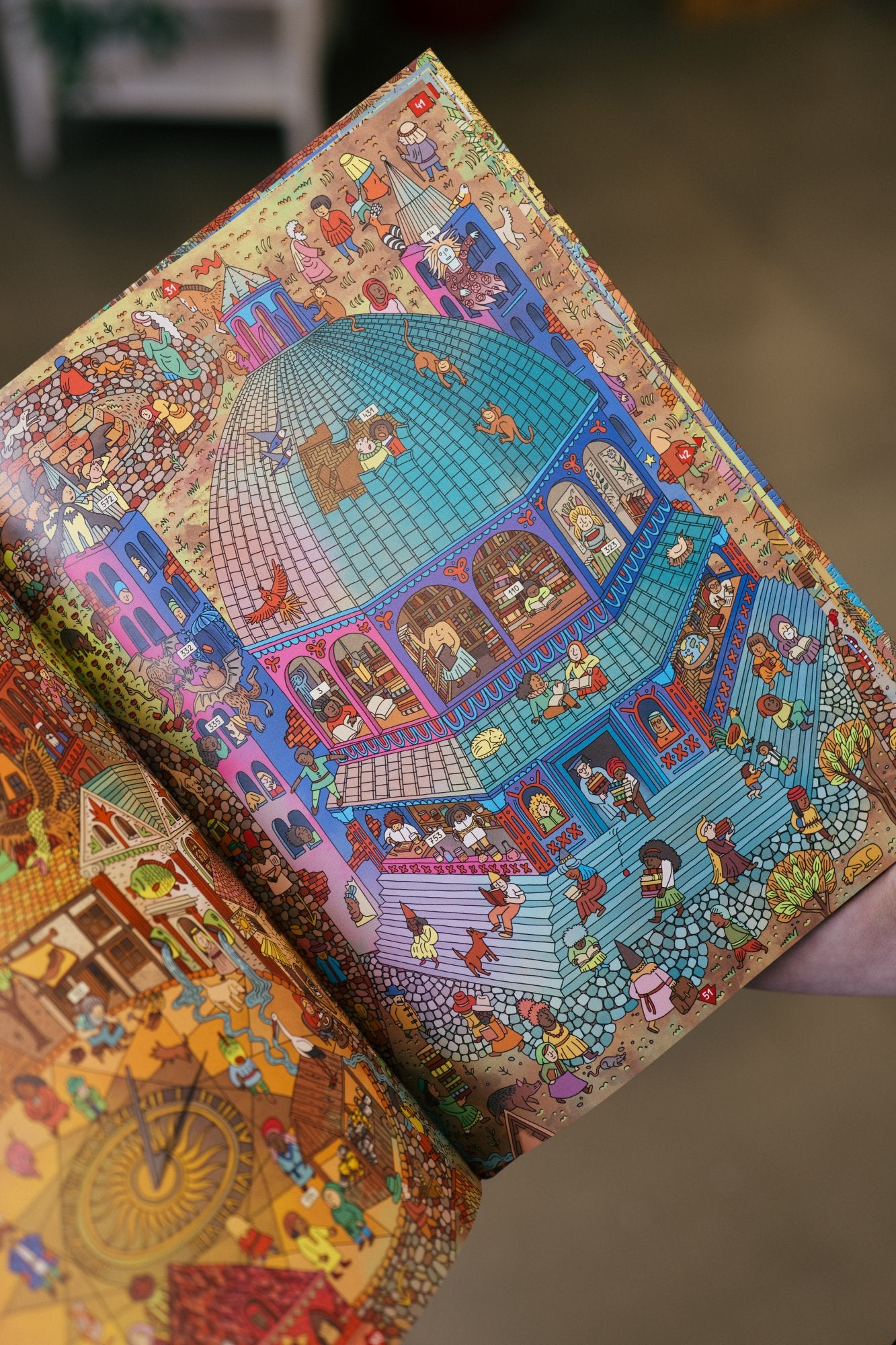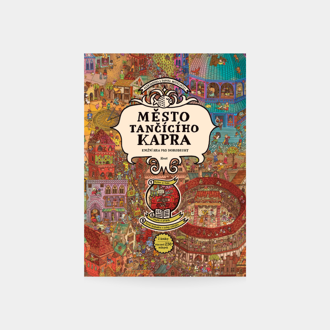 Autoři bestsellerových Map přichází s fascinujícím konceptem na pomezí knihy a deskové hry. Město Tančícího kapra obsahuje velkoformátovou hledací knihu (snad ještě desetkrát zaplněnější než geniální Mapy!), kterou doprovází brožovaný Průvodce — game book —, podle nějž čtenář postupuje městem a řeší úkoly. A navíc také sedm archů se samolepkami (lze je použít opakovaně), díky nimž získává hra další rozměr.