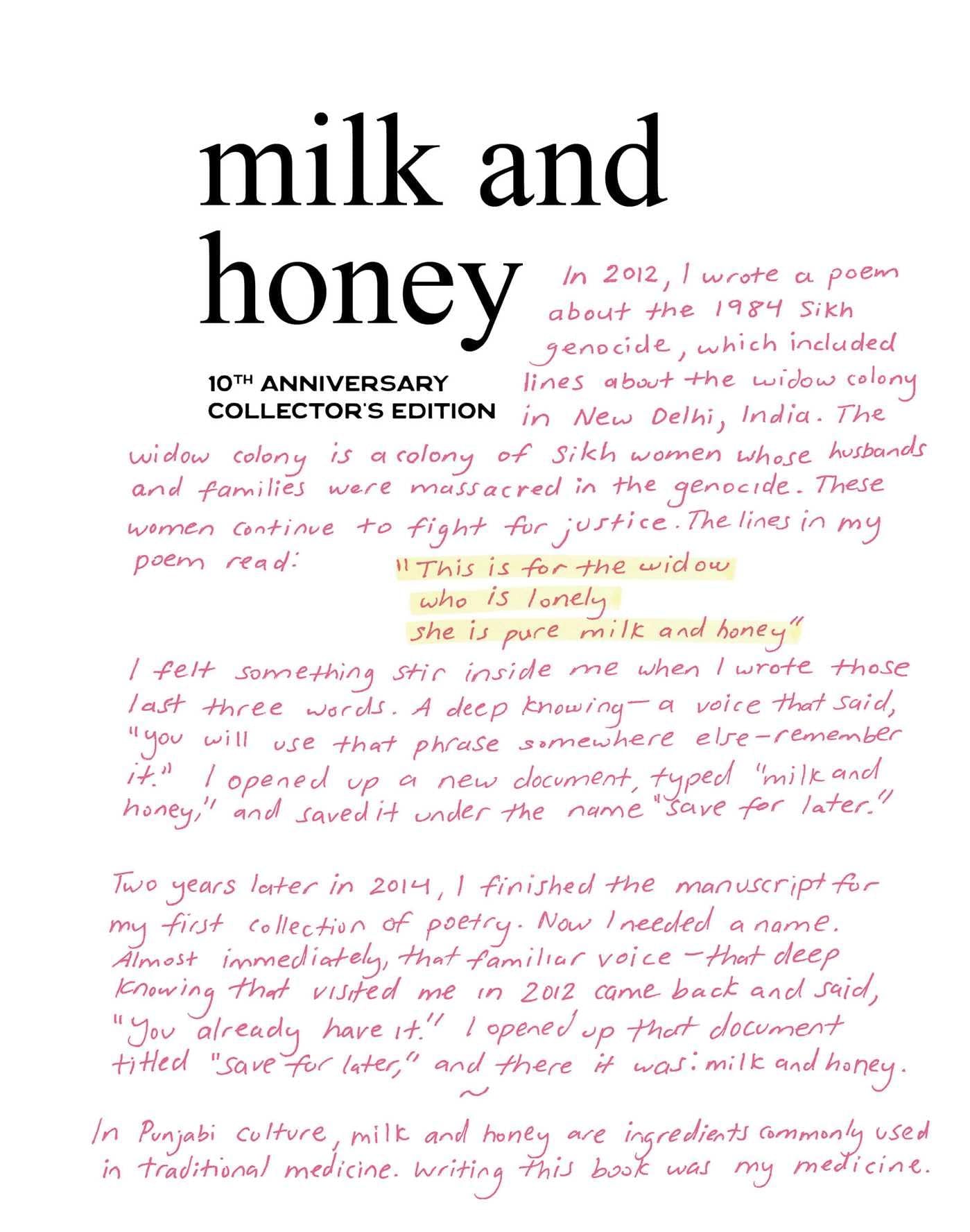 An exceptional volume, the milk and honey 10th Anniversary Collector’s Edition is a must-have keepsake that will be treasured by longtime fans as well as readers new to the work that transformed poetry in our time.