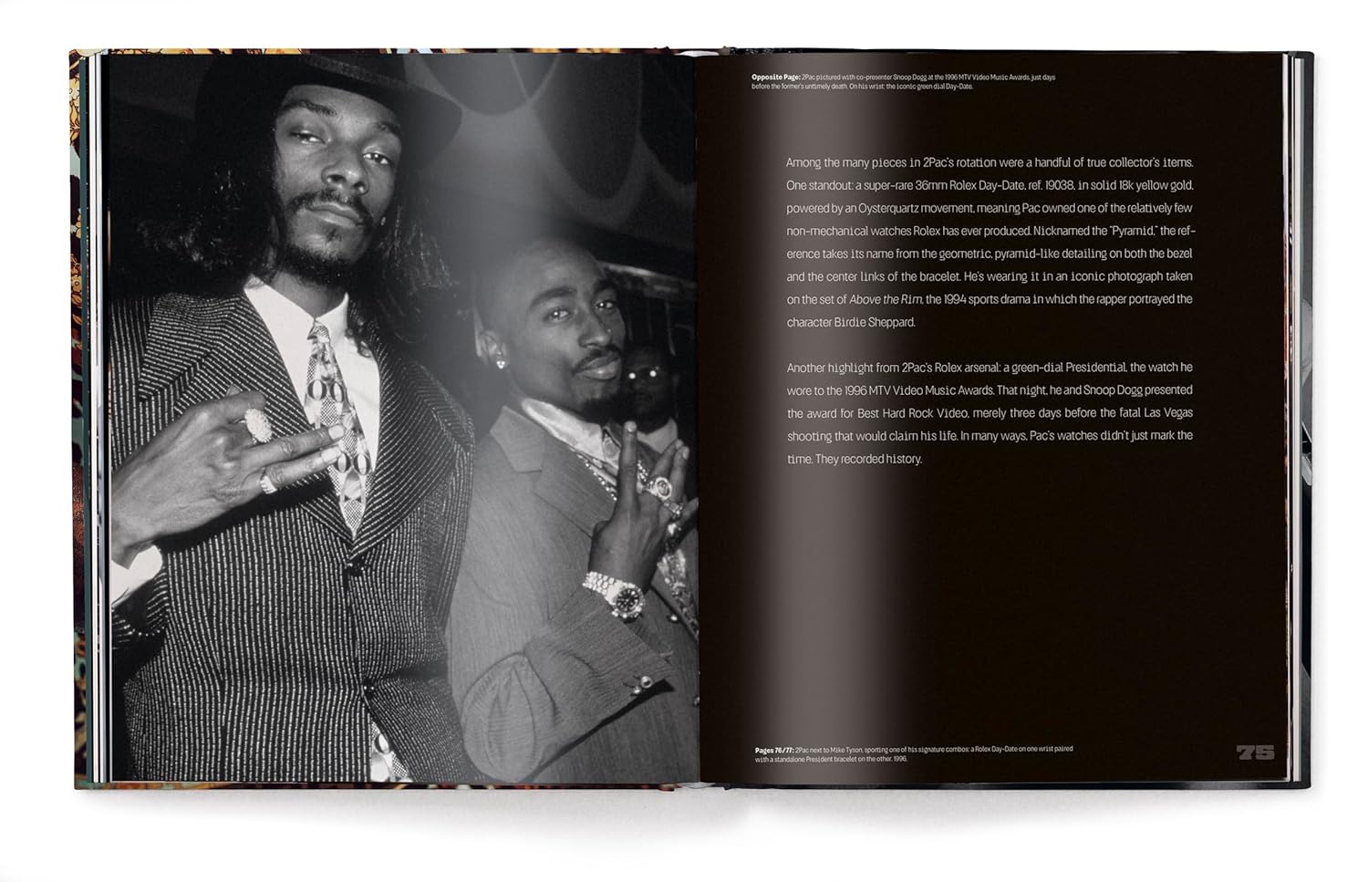 Step into the brash and flamboyant world of hip hop’s ultimate status symbols: luxury watches. Million Dollar Hip Hop Watches tells the story of rap’s colourful journey from the Bronx to global domination as reflected in the iconic timepieces of its stars. From 2Pac’s Rolex Day-Date to Jay-Z’s $5 million Hublot, this book showcases the stunning artistry, bold self-expression, and cultural impact of hip hop’s consummate wrist game.