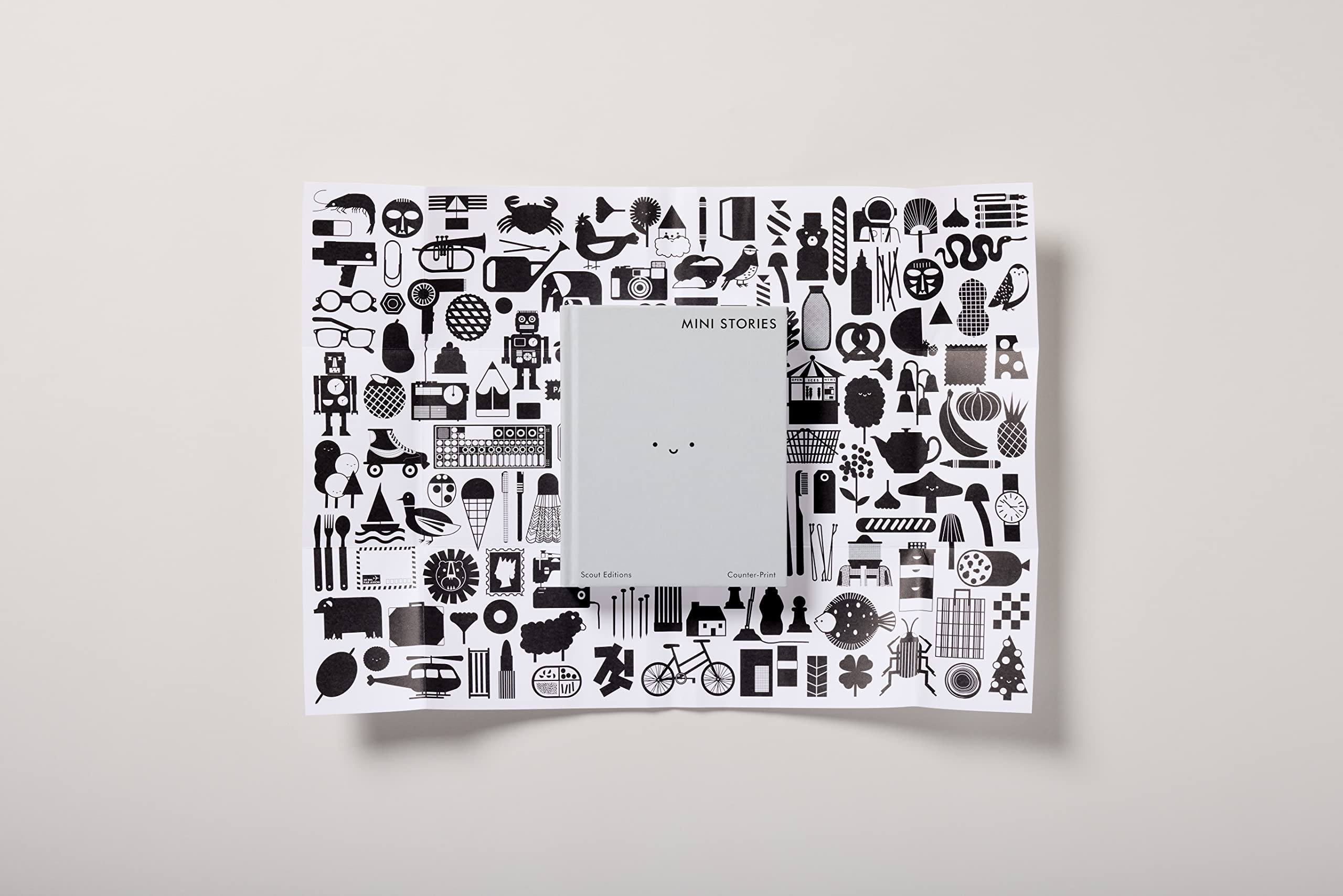Mini Stories oferuje osiem różnych wzorów pasków na brzuch, każdy ozdobiony unikalną ilustracją z książki. Te starannie zaprojektowane paski na brzuch rozkładają się, ukazując czarno-biały plakat przedstawiający kolekcję ikon, specjalnie spreparowanych przez Scout Editions.