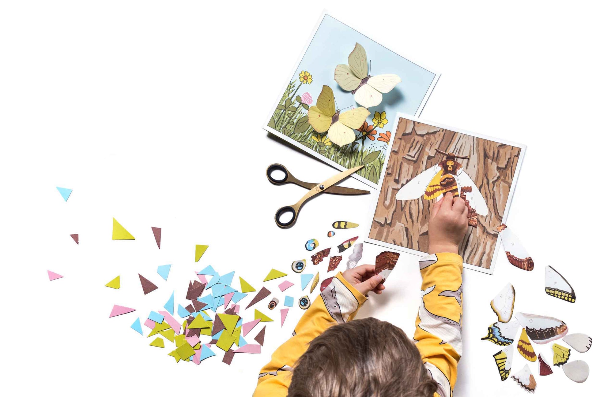 W tym kreatywnym zestawie znajdziesz 6 wizytówek do skompletowania. Na kartach znajdują się następujące motyle: Porost Śmierciogłowy, Martinka Gruszkowa, Motyle Koperkowe, Motyl Pawie Oko, Bielik Kapustny i Rokitnik Żółtogoniasty. Dodatkowo w opakowaniu znajdują się wizerunki motyli w rzeczywistych rozmiarach, z których istnieje możliwość stworzenia własnej kolekcji motyli.