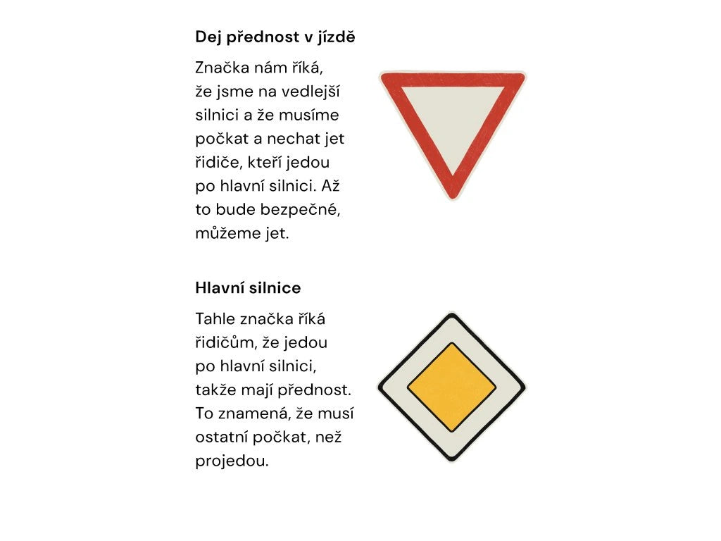 Dopravní značky jsou všude kolem nás, ať už žijeme ve městě nebo se vydáme na cesty. Značky nám něco říkají a je důležité vědět, co znamenají. Kdyby značky nebyly, byl by všude zmatek a spousta nehod. Tak jdeme na to!