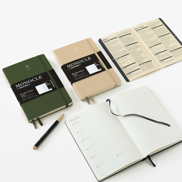 Przygotuj się na rok 2022 dzięki temu dziennikowi, który zawiera planery tygodniowe i miesięczne oraz przegląd roczny. Jest też dużo miejsca na notatki, które pomogą Ci być na bieżąco, oraz specjalna wkładka zawierająca 25 profili miast MONOCLE, od Berlina po Nowy Jork.