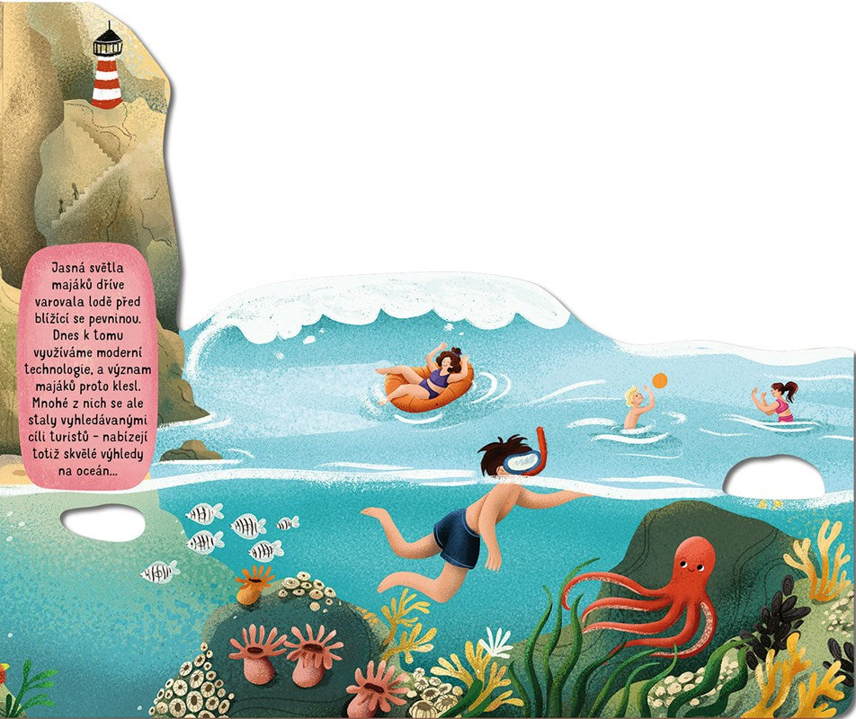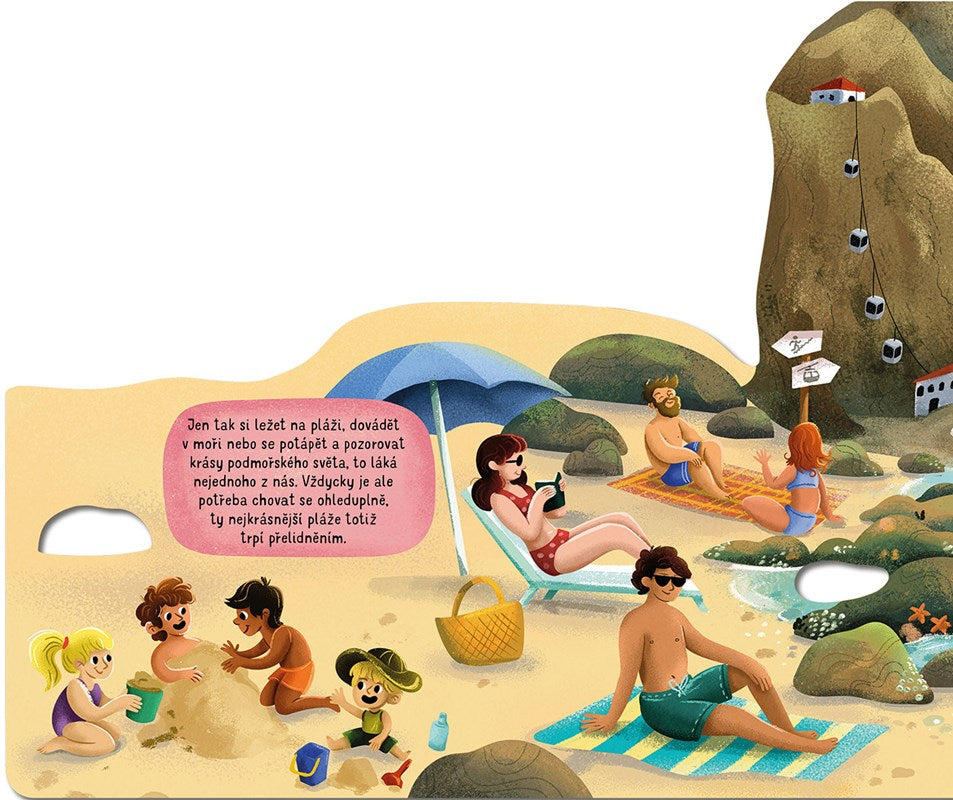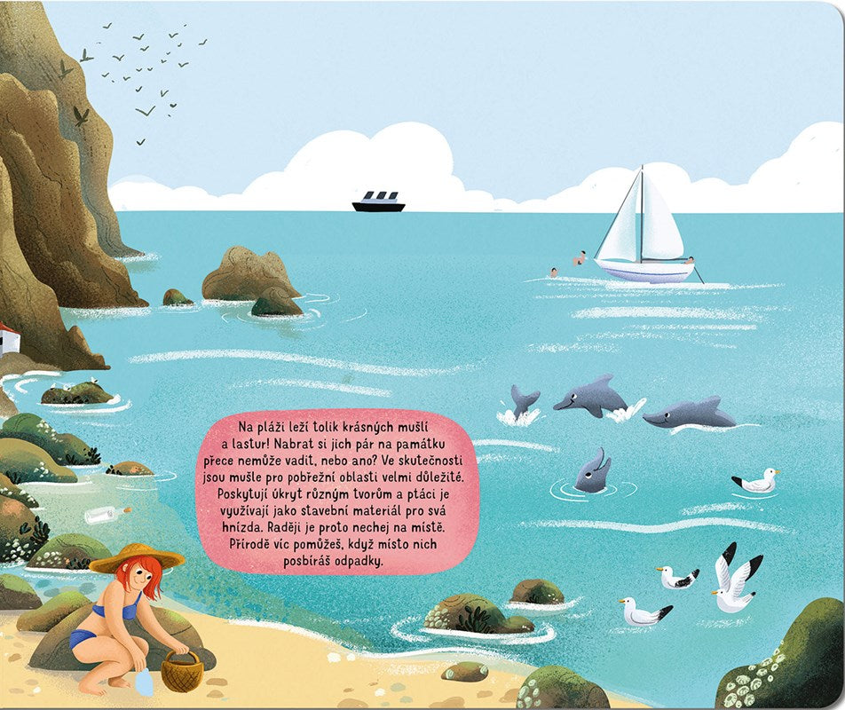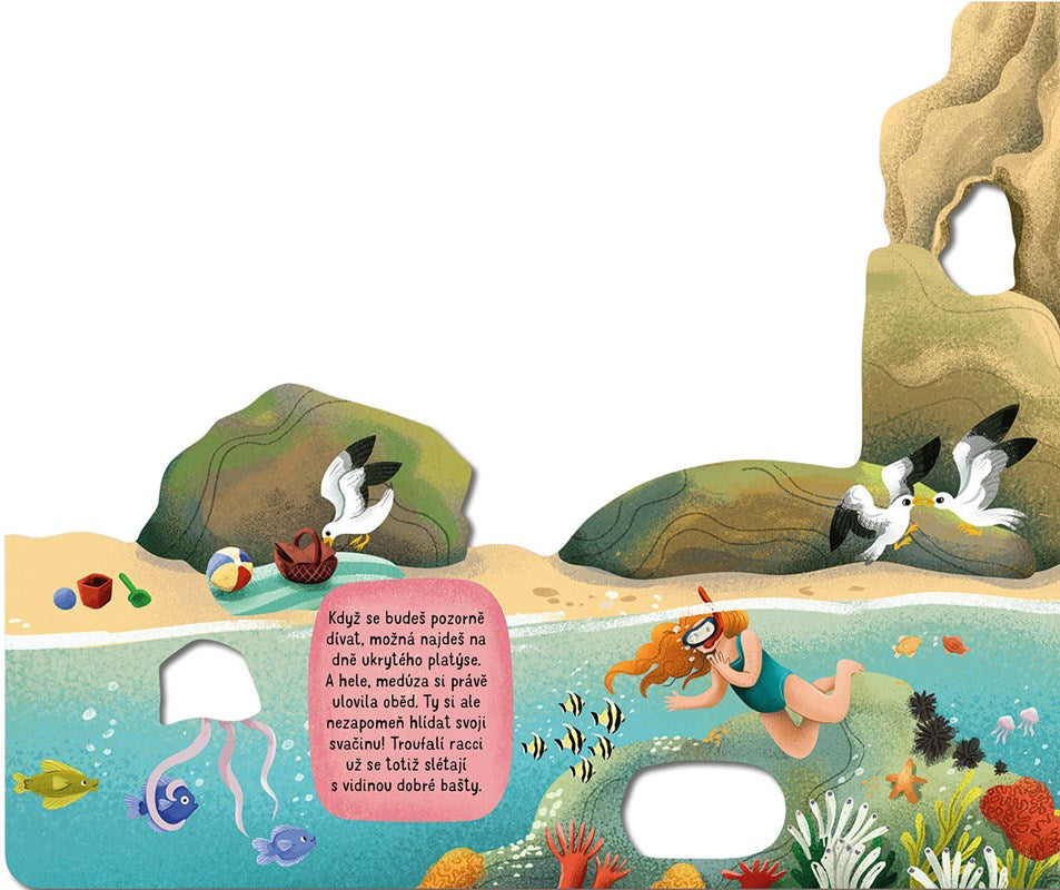 Šumění oceánu, sůl ve vlasech, dotek slunce na kůži i pokřikující rackové. Na vodě se pohupují lodě a lidé si užívají nejrůznější vodní radovánky. Zkus se ale na chvíli zblízka podívat na pláž pod svýma nohama, tam to teprve žije! Na první pohled si možná ničeho nevšimneš, ale dej tomu ještě chvíli… Podívej, tamhle se mezi kamením a pískem něco pohnulo. A tady taky! A co teprve v mělké mořské vodě… Znáš už všechny její obyvatele? Neváhej, namoč si nohy a vydej se poznávat tento různorodý svět.