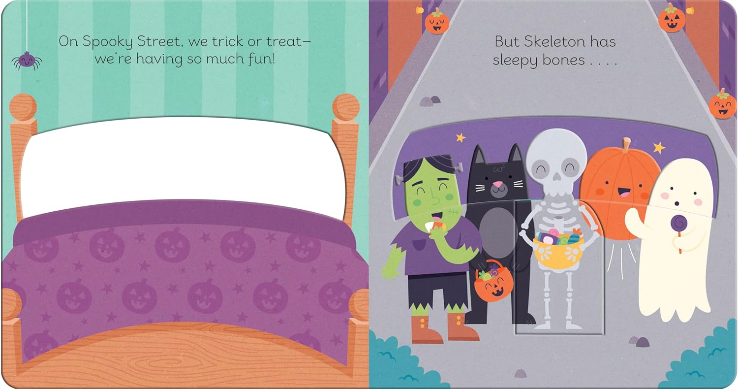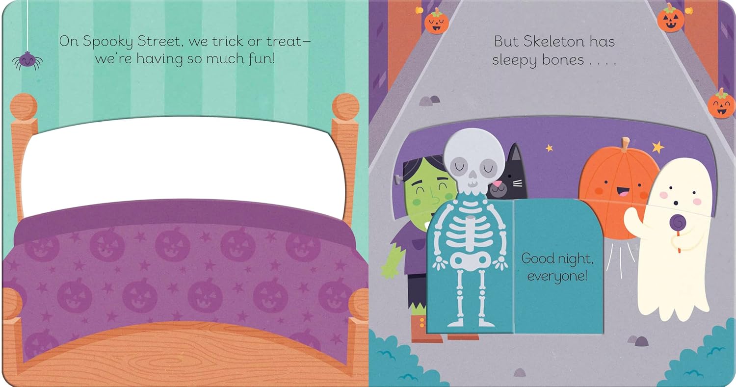 It’s Halloween night, and the ghosts and skeletons are starting to feel tired! They’ve had fun trick-or-treating, and now it’s time for bed. Follow along as one-by-one, the friendly characters finish their spooky activities and creep home in the moonlight.