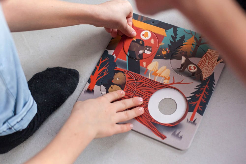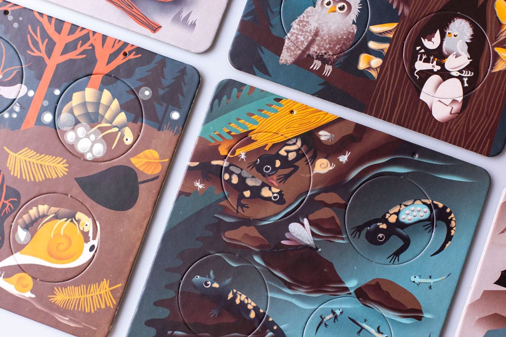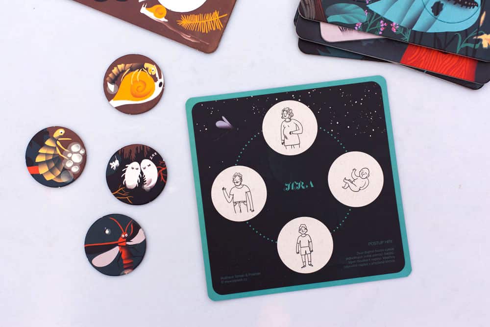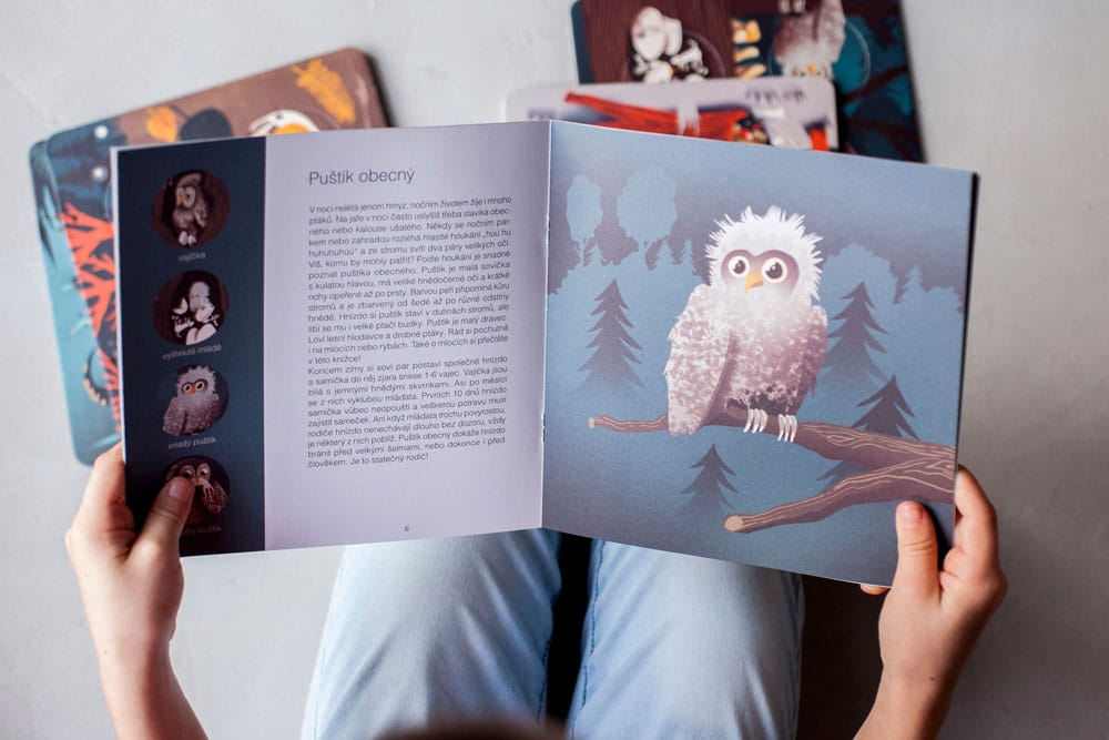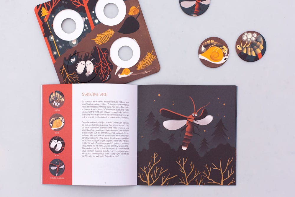 „Ta interaktywna książeczka przedstawia ciekawe fakty z życia 6 nocnych zwierząt. Nietoperz, kuna, kuna, porost i świetlik pokażą Ci zmiany fizyczne w nich zachodzące. Spróbuj ułożyć okrągłe żetony w taki sposób, aby stworzyć pełny obraz rozwoju zwierzęcia. W całkowitej ciemności karty zdradzą Ci także więcej małych tajemnic.