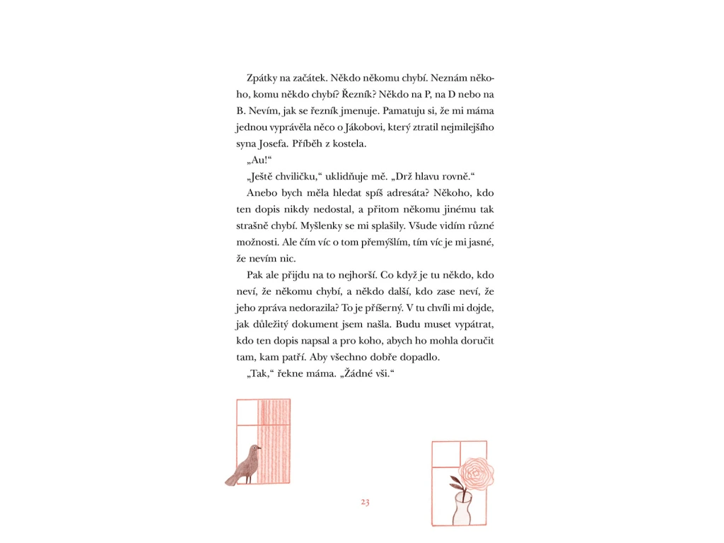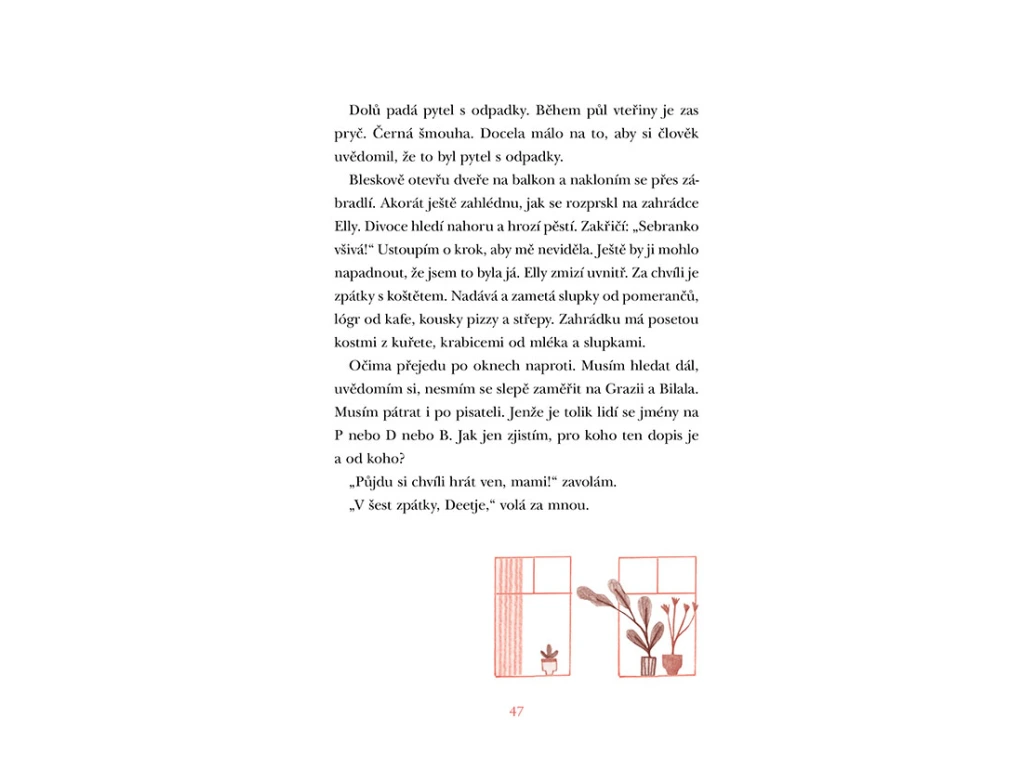 Devítiletá Deetje bydlí se svojí maminkou v bytovce. Jednoho dne nalezne na ulici dopis. Jméno a adresa jsou přeškrtnuté. Je od někoho, komu někdo hodně chybí. O tom Deetje něco ví. Vůbec se své mámě nepodobá, proto si myslí, že musí být adoptovaná. Rozhodne se, že dopis doručí správné osobě, a do pátrání zapojí i chytrého kamaráda Vita a taky Kevina. Všude jsou nějaké stopy, jenže každá odpověď přináší další otázky – až se na povrch prodere i ta nejdůležitější otázka: kdo jsem já?