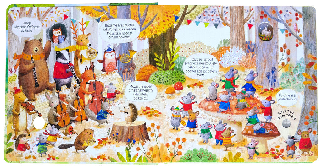Co to je za zvuk? To je přece slavný Orchestr zvířátek! A zrovna hraje velkolepé skladby od Wolfganga Amadea Mozarta. Mozart byl už jako dítě zázračně nadaný a hudbu začal skládat již v 5 letech! Pojď si se zvířátky poslechnout melodie a seznámit se s nejslavnějším hudebním skladatelem všech dob. Nejznámější skladby se přehrají po stisknutí tlačítka a veselí kamarádi z lesa malé zvědavce obeznámí se životem a dílem Mozarta.