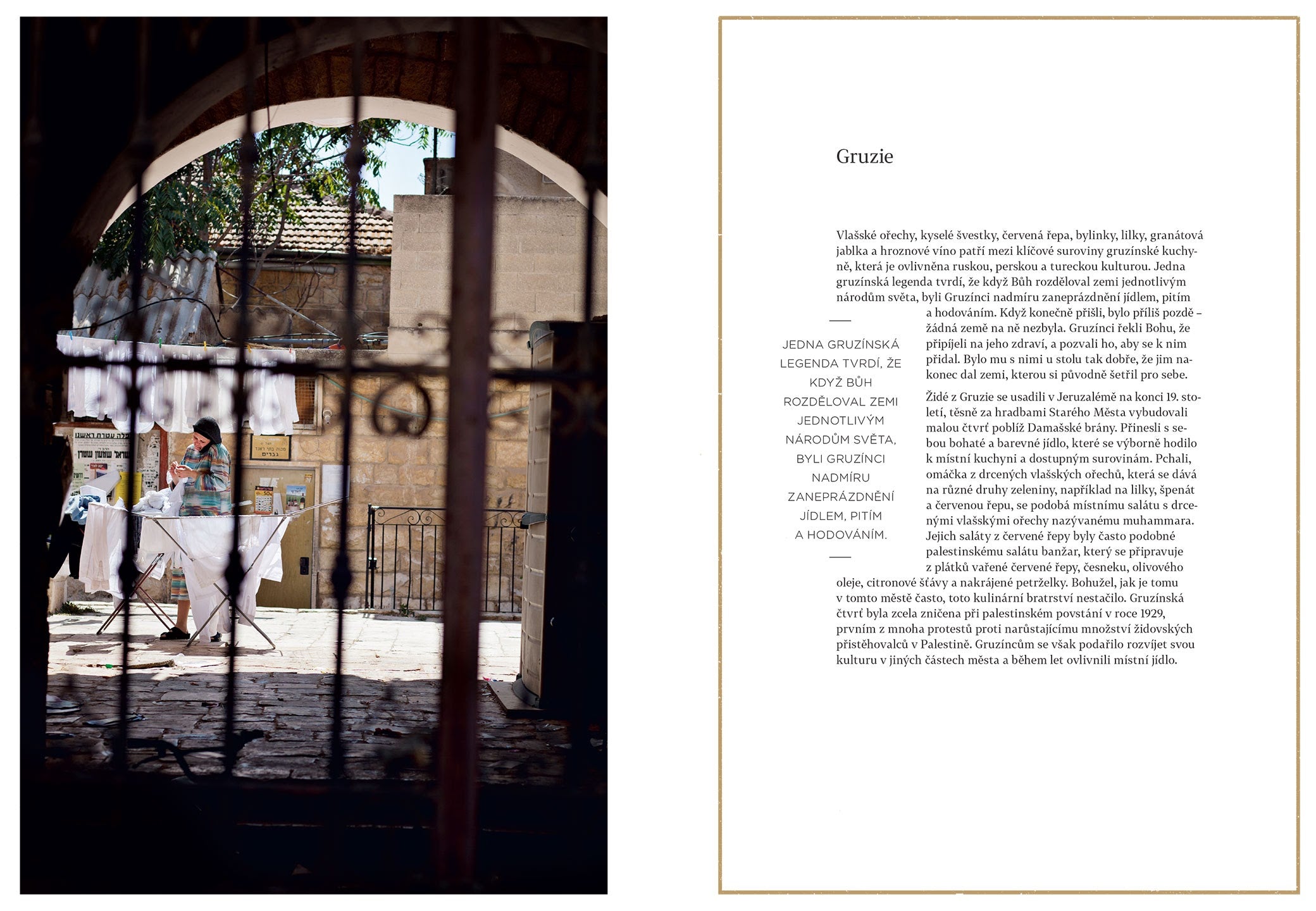 Autoři této knihy Yotam Ottolenghi a Sami Tamimi vyrůstali v 70. až 80. letech minulého století v Jeruzalémě, aniž by se znali. Yotam žil v židovské čtvrti na západě tohoto starobylého města, Sami v jeho arabské čtvrti na východě. Setkali se v Londýně roku 1999 a stali se z nich obchodní partneři ve ?rmě Ottolenghi, která mimo jiné provozuje restaurace a lahůdkářství. Jejich zážitky z dětství jim po čase posloužily jako inspirace při psaní této knihy. Tradiční recepty upravili tak, aby vyhovovaly životnímu stylu a chutím současných kuchařů a strávníků. Kniha je napsána jako pocta městu, kde se setkává mnoho kultur a také mnoho kuchyní z různých částí světa. Obsahuje 120 receptů na přípravu zajímavých pokrmů ze zeleniny, luštěnin i masa, ale i dezertů, vybraných autory na základě jejich preferencí chutí a zvyků při vaření a také vzpomínek na to, jak se vařilo v jejich širších rodinách. Nesnažili se podrobně dokumentovat židovskou ani arabskou kuchyni v uvedeném městě, šlo jim spíše o zachycení vlastních zkušeností a jejich využití v současném stylu vaření.