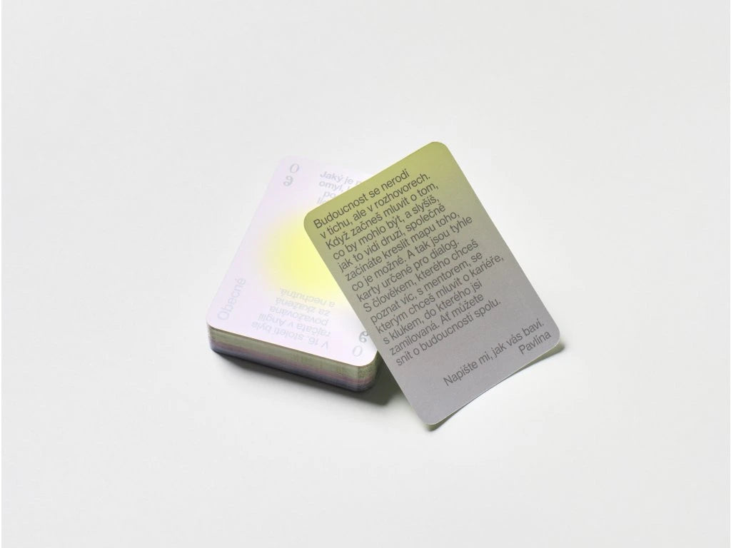 Budoucnost je příliš zajímavá na to, abychom ji odbyli s tím, že „uvidíme“. Skládáme si ji v rozhovorech. S rodinou, kamarády i kolegy. Set konverzačních karet vás vezme na výlet za zajímavými tématy a odstartuje smysluplné, hluboké a možná i trochu futuristické debaty. Představuje ideální doprovod na rande, rodinnou oslavu i víkend na chalupě.
