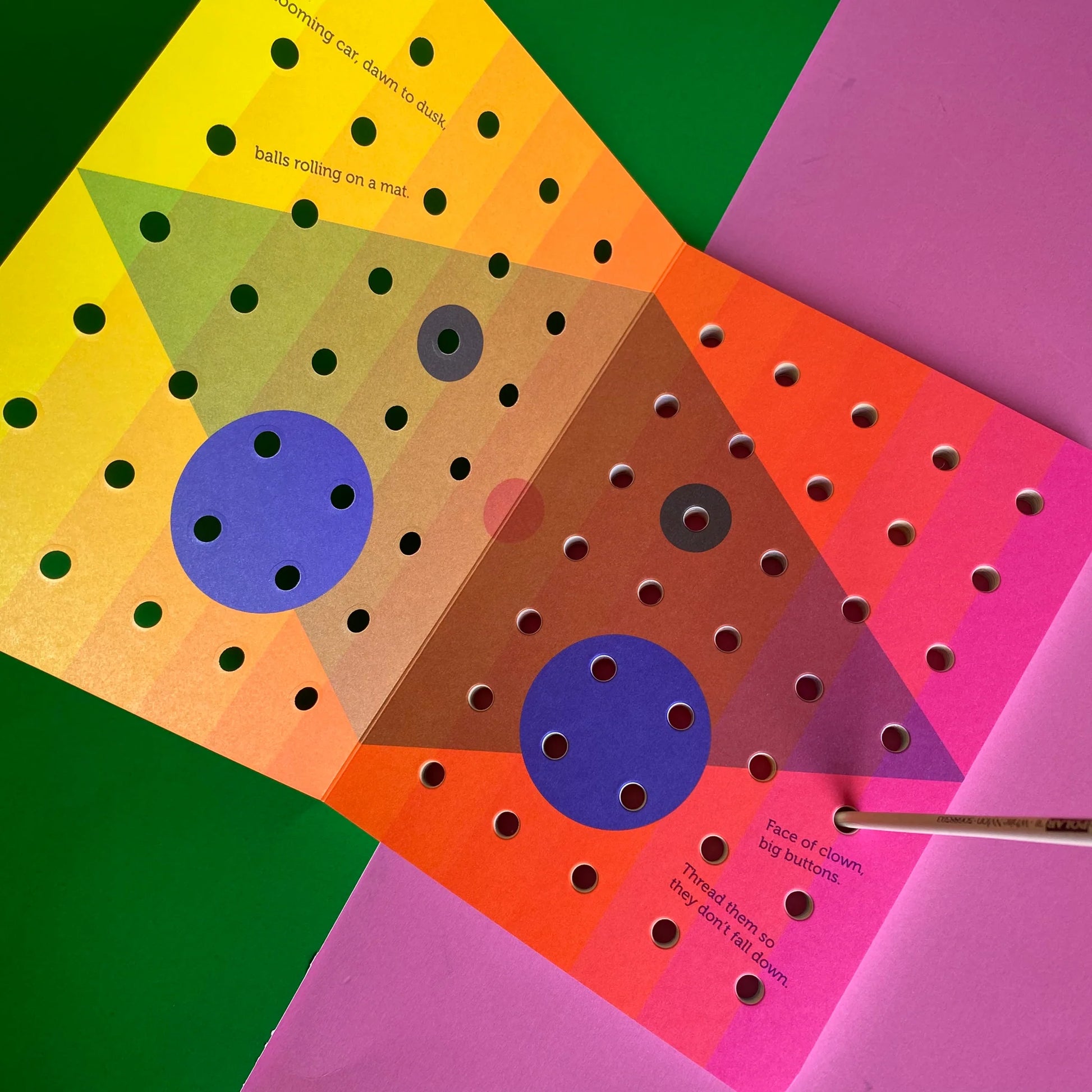 Fabuła i proste ilustracje budowane są wokół systemu perforacji. Perforacje te można również wykorzystać do dodania drewnianych kołków lub nitek w celu dodania szczegółów do ilustracji