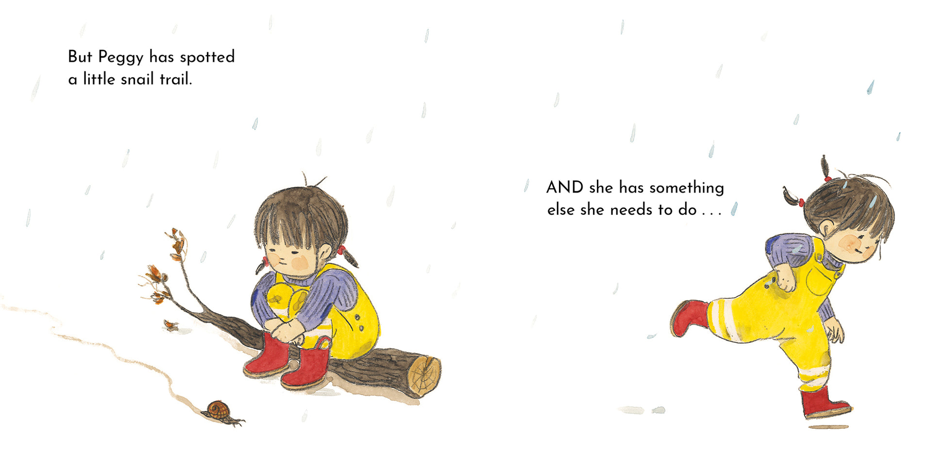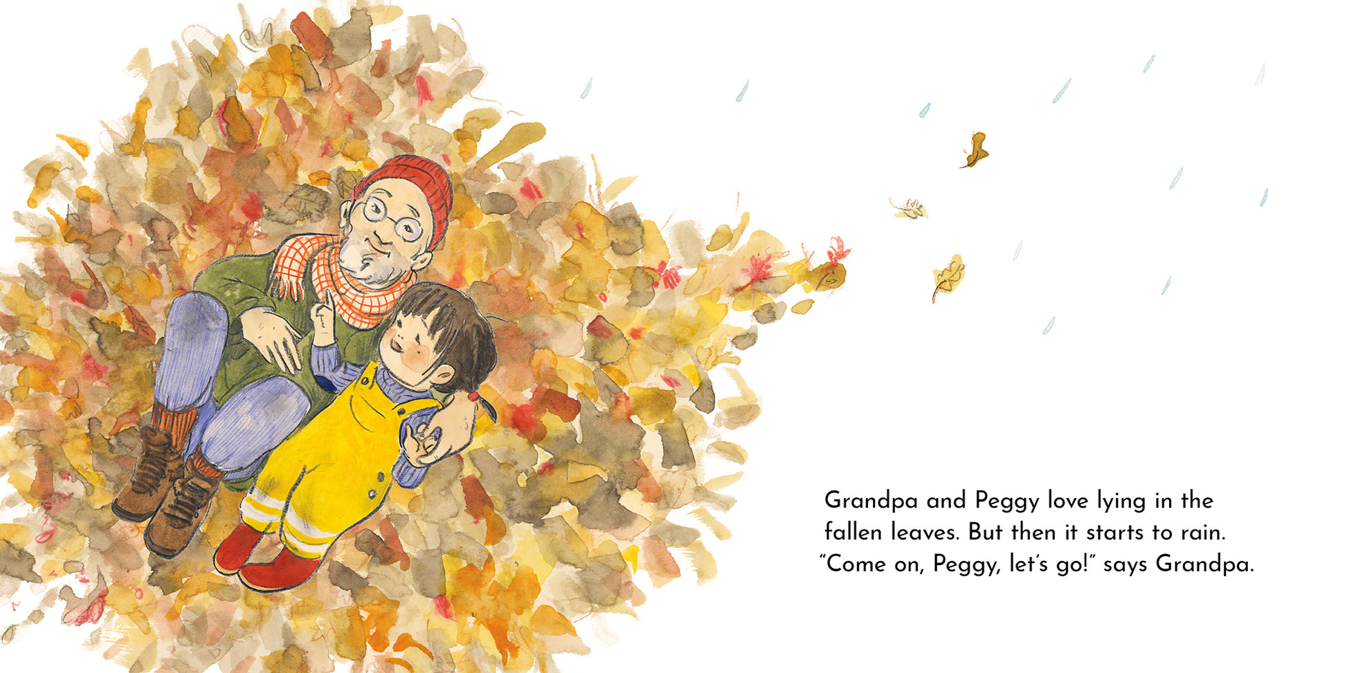 Join Peggy and Grandpa on a delightful walk through nature! Determined to explore, Peggy slides down little hills, splashes in muddy puddles and snuggles up in the crunchy fallen leaves. And when her little legs get tired, Grandpa is always there to carry her all the way home.
