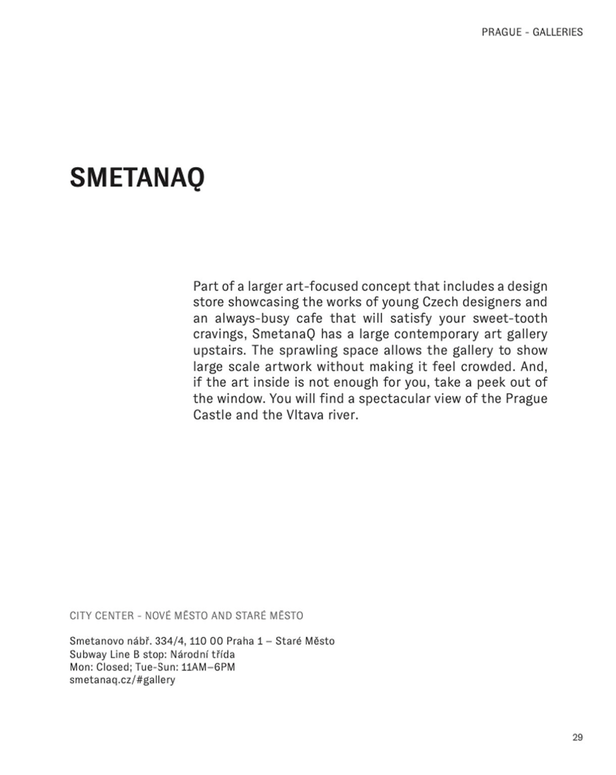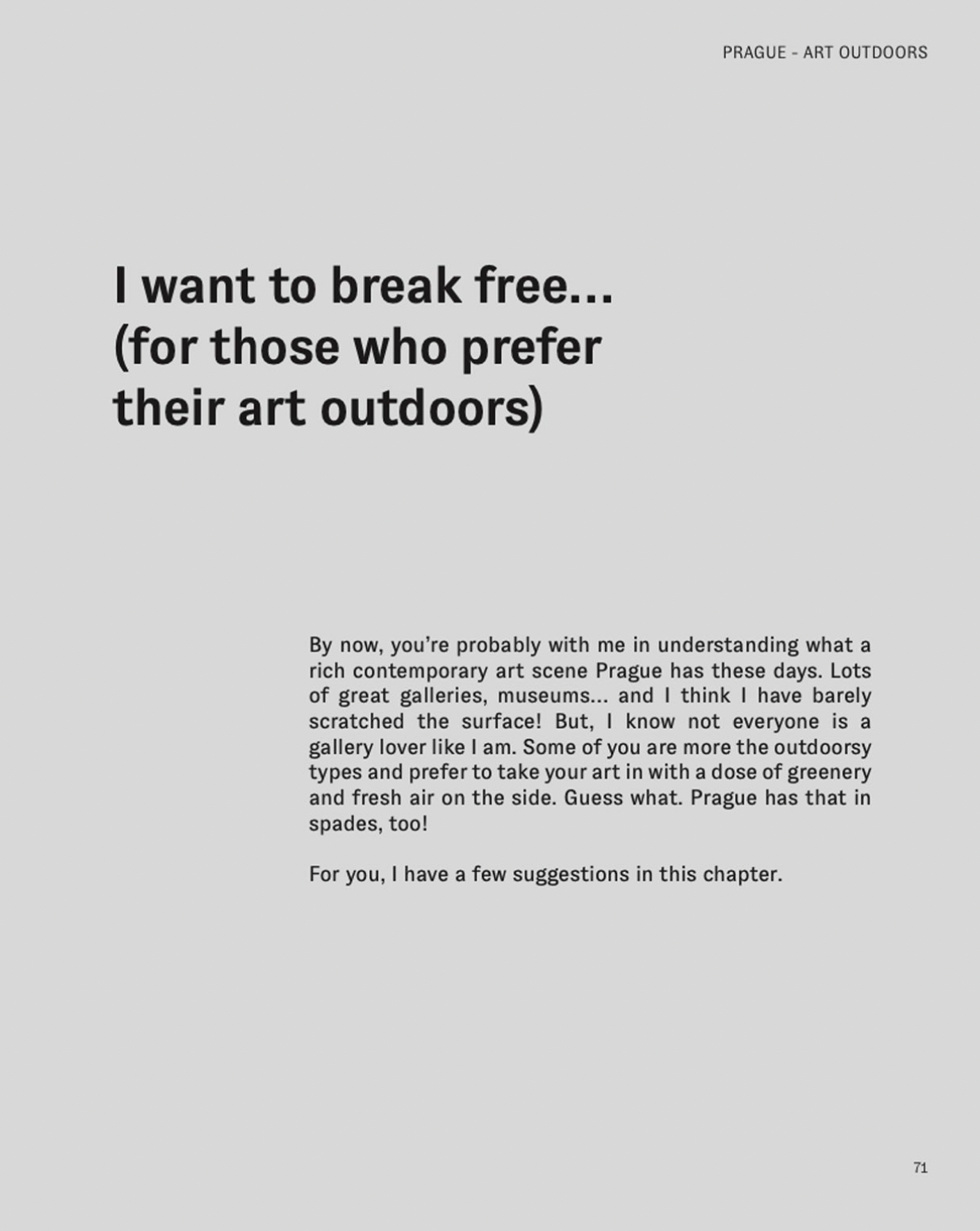 Pierwsza publikacja w serii przewodników miejskich Loves Art Will Travel dla miłośników designu, Praha: A Modern Twist to przewodnik dla podróżników, którzy kochają sztukę współczesną i nowoczesny design i chcą uwzględnić je w swoich podróżach.