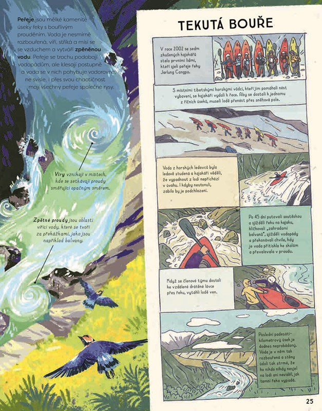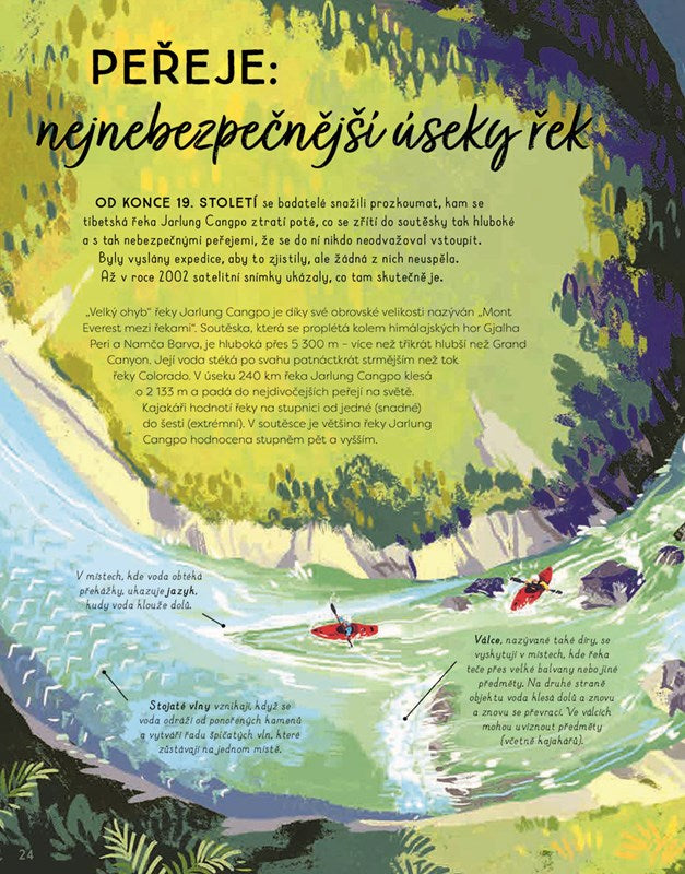 Bohatě ilustrované stránky této knihy představí dětem neuvěřitelně pestrý svět vodních toků. Provedou je po nejzajímavějších řekách všech kontinentů od pramene až po ústí a ukážou přírodní bohatství i kulturní a technické skvosty s nimi spojené. Zvídavé čtenáře tak seznámí s prazvláštními tvory žijícími v temných podzemních řekách i s bohatstvím života v záplavových mokřadech nebo v mangrovech, pronesou je nebezpečnými peřejemi ve strmých horských soutěskách, zavedou k prastarým i moderním přehradám a mostům, ukážou nejrůznější druhy plavidel a spoustu dalšího. To vše doplňují nádherné celostránkové ilustrace a rozkládací panoramatické strany, které podrobně představí šest světových veletoků.