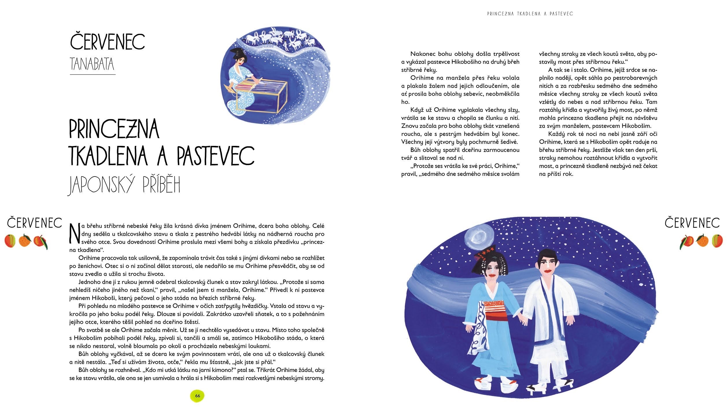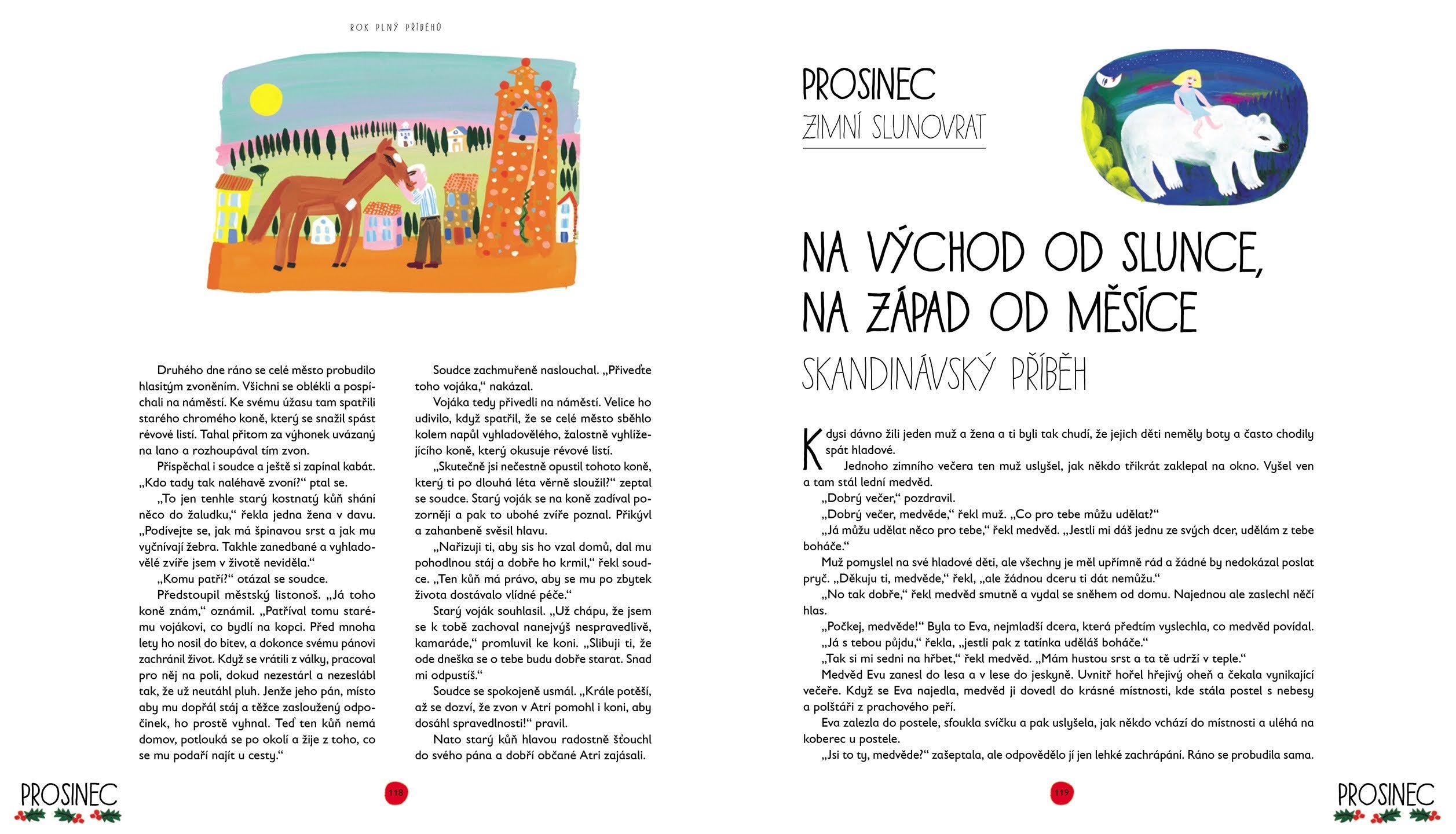 Świętuj cały rok dzięki tej bogato ilustrowanej kolekcji pięćdziesięciu dwóch ulubionych historii z całego świata. Znajdziesz tu kilka znanych europejskich baśni i legend, a także egzotyczne mity i legendy z odległych krain - historie opowiadane przez Niemców, Rosjan, Francuzów, Irlandczyków, Żydów, Japończyków, Chińczyków, Arabów, Eskimosów, rdzennych mieszkańców Afryki, Amerykę i Australię. Opowieści ułożone są według pór roku, świąt i ważnych dni obchodzonych w różnych kulturach świata. Dzięki swojej długości i różnorodności idealnie nadaje się do czytania dzieciom przed snem, ale może spodobać się także dorosłym.
