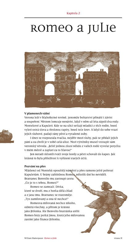 Poslední hra v tomto výběru, „Bouře“, je úplně jiná. Shakespeare se v ní loučí s divadlem a jeho čarovnou mocí i se svým pozemským bytím. Každá z uvedených Shakespearových her je doplněna úvodem a závěrem, které čtenářům přibližují vnější projevy doby: renesanční módu, architekturu, rodinný život, dobové válečnictví, medicínu, spiknutí, ale i životní osudy anglických panovníků a jejich blízkých. Převyprávění i naučné texty Renáta Fučíková bohatě doprovodila svými ilustracemi.