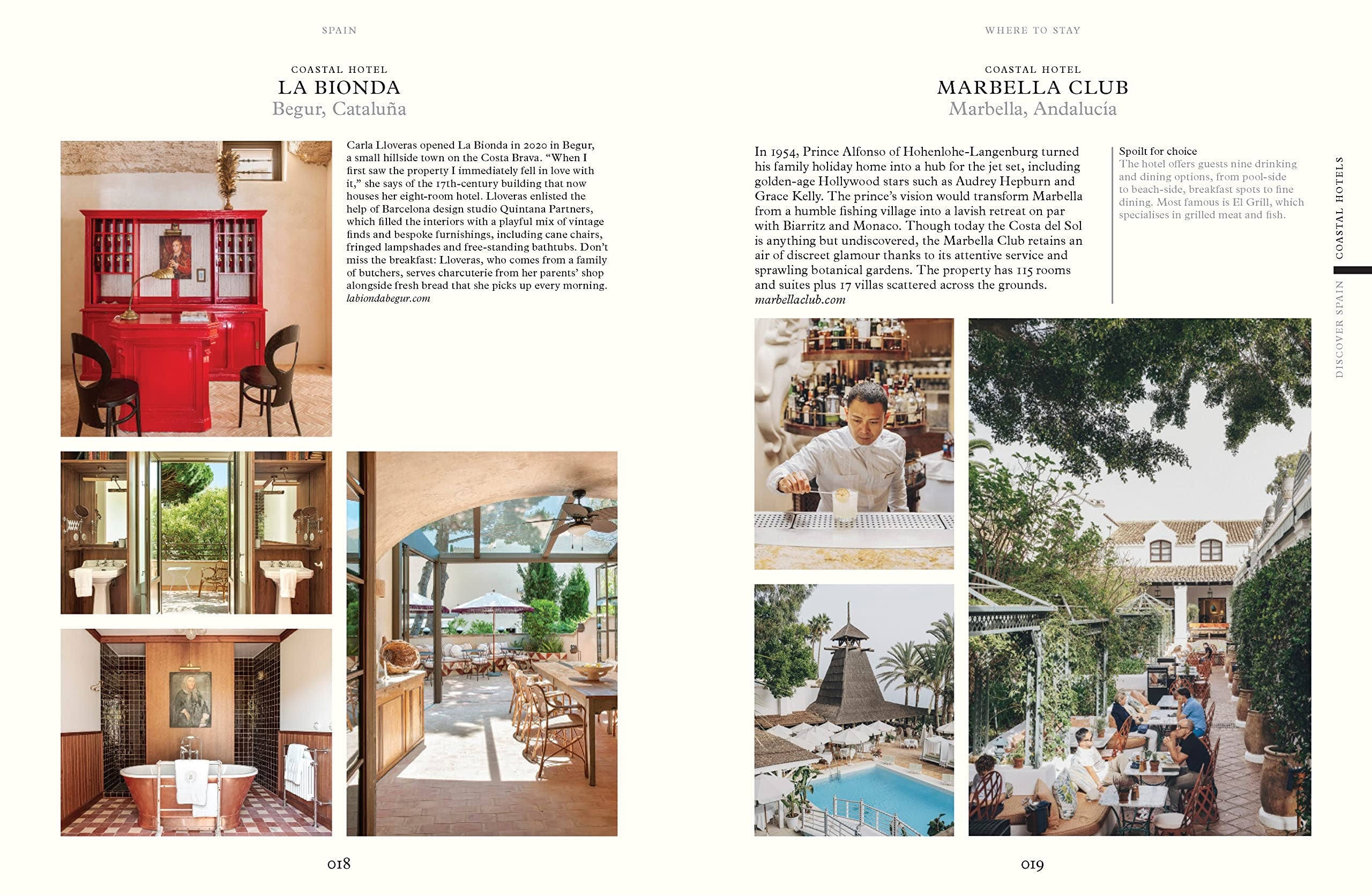 Odkryj najbardziej eleganckie zakątki przy plaży na Costa Brava, rodzinne restauracje serwujące najsmaczniejsze tapas w Andaluzji i najgłośniejsze bary w Barcelonie, zanim udasz się na wycieczkę kulturalną do Walencji, Bilbao lub Madrytu. Spotkasz Hiszpanów, którzy robią furorę w branży modowej, odwiedzisz rzemieślników tworzących piękne, współczesne projekty i usłyszysz, co mówią szefowie kuchni, którzy wstrząsają sceną kulinarną w kraju. I oczywiście znajdziesz najpiękniejsze połacie piasku, na których możesz położyć ręcznik.