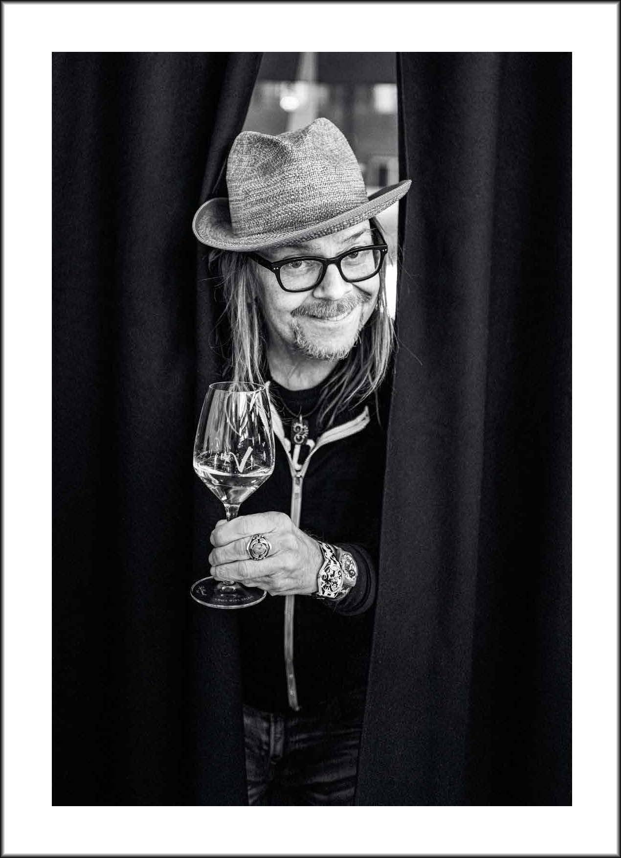 Sir Paul Smith z krzywym uśmiechem przed półką z książkami. Javier Bardem, całkowicie zrelaksowany, w tenisówkach na słonecznym polu. Rasmus Kofoed, szef kuchni w Geranium w Kopenhadze, jednej z najlepszych restauracji na świecie, na szczycie porośniętej bluszczem ściany. Tym, co łączy wszystkie te portrety – obok poczucia bliskości i prywatności – jest szklanka. Bo tak Gerard-Philippe Mabillard fotografuje swoich przyjaciół i znajomych, wszystkie osobistości ze świata filmu, sztuki, mody, dizajnu i kultury.