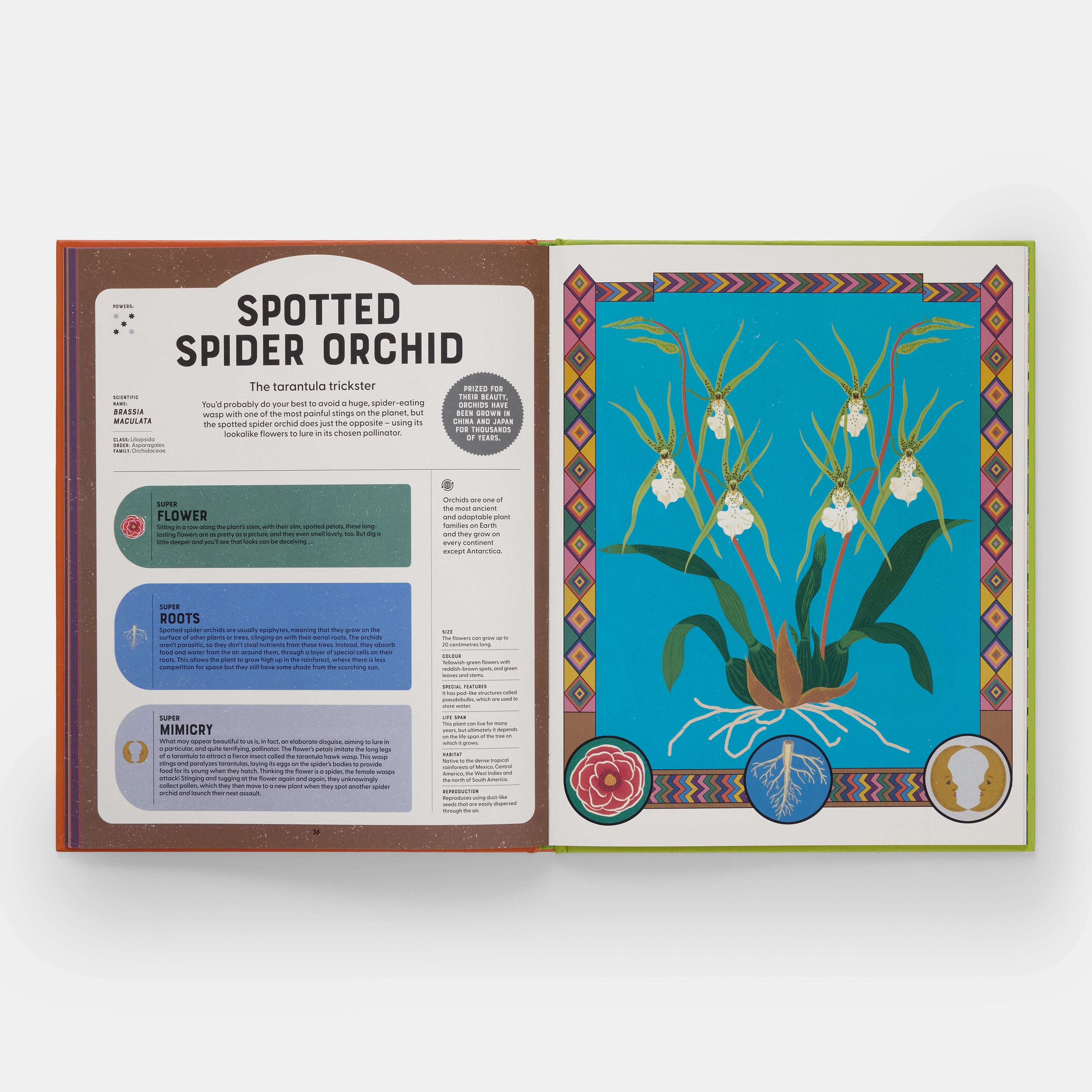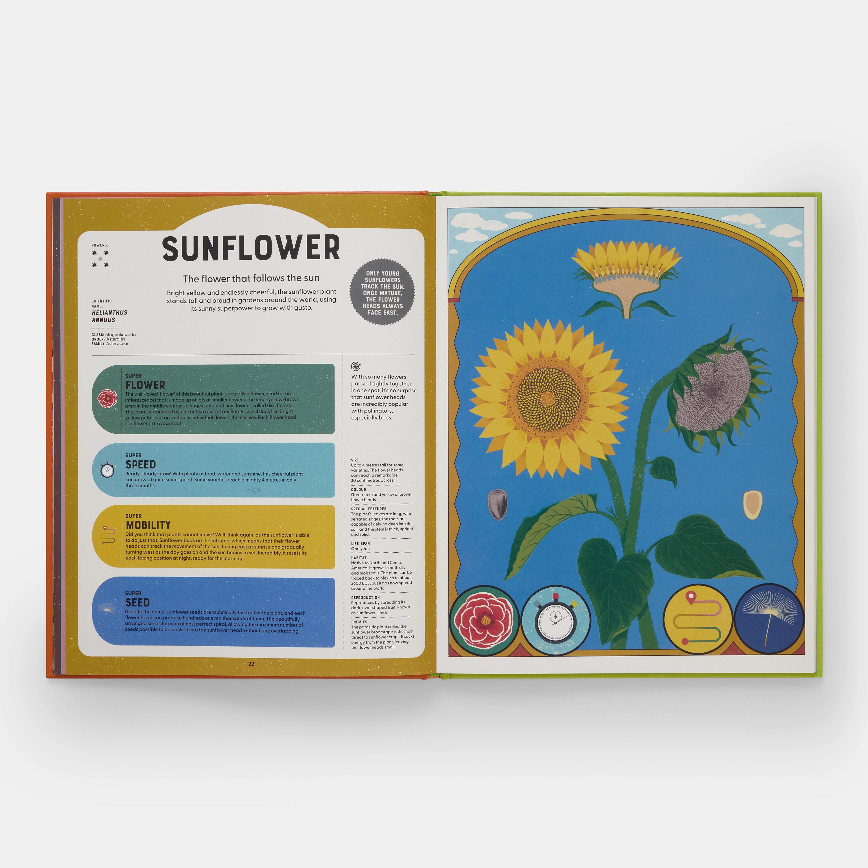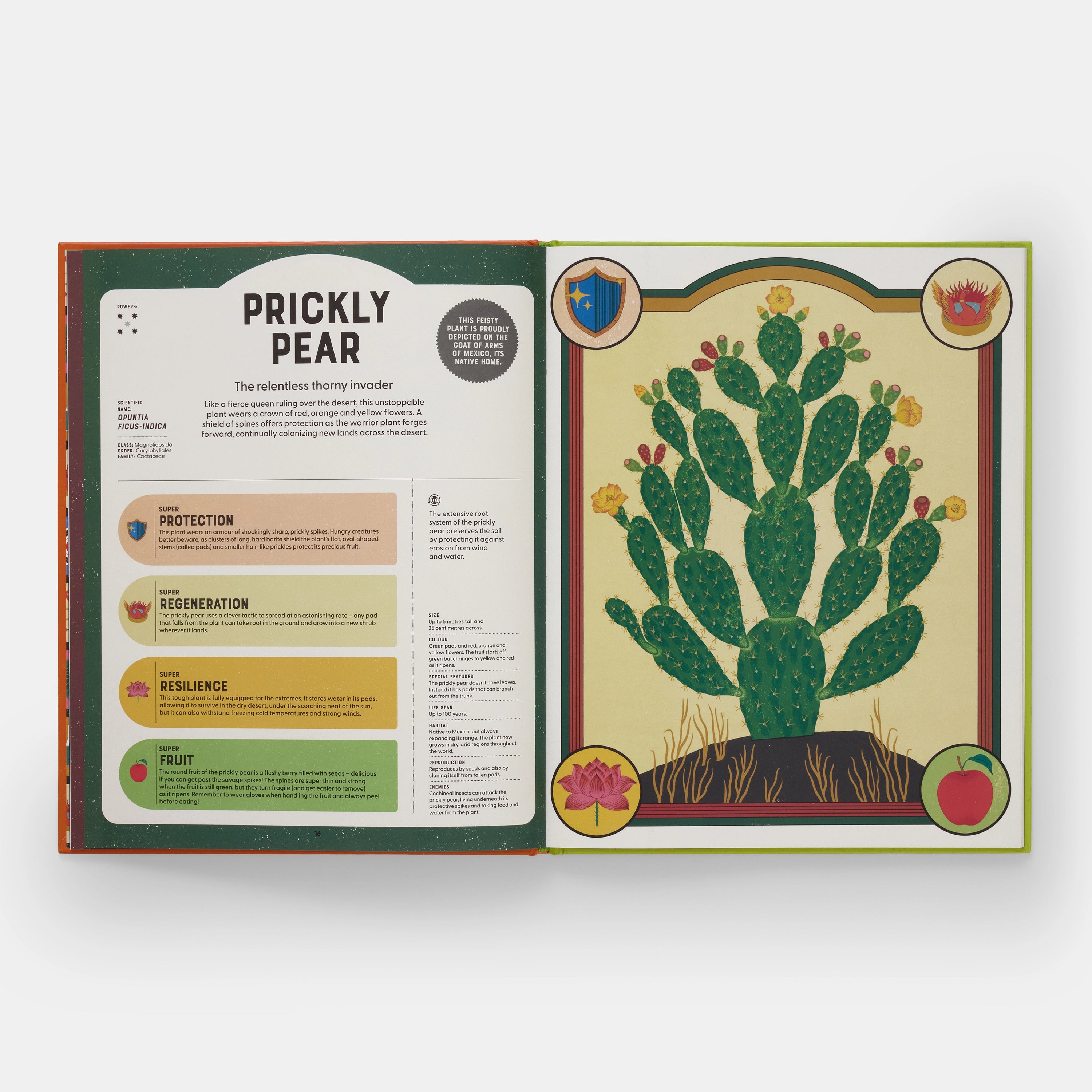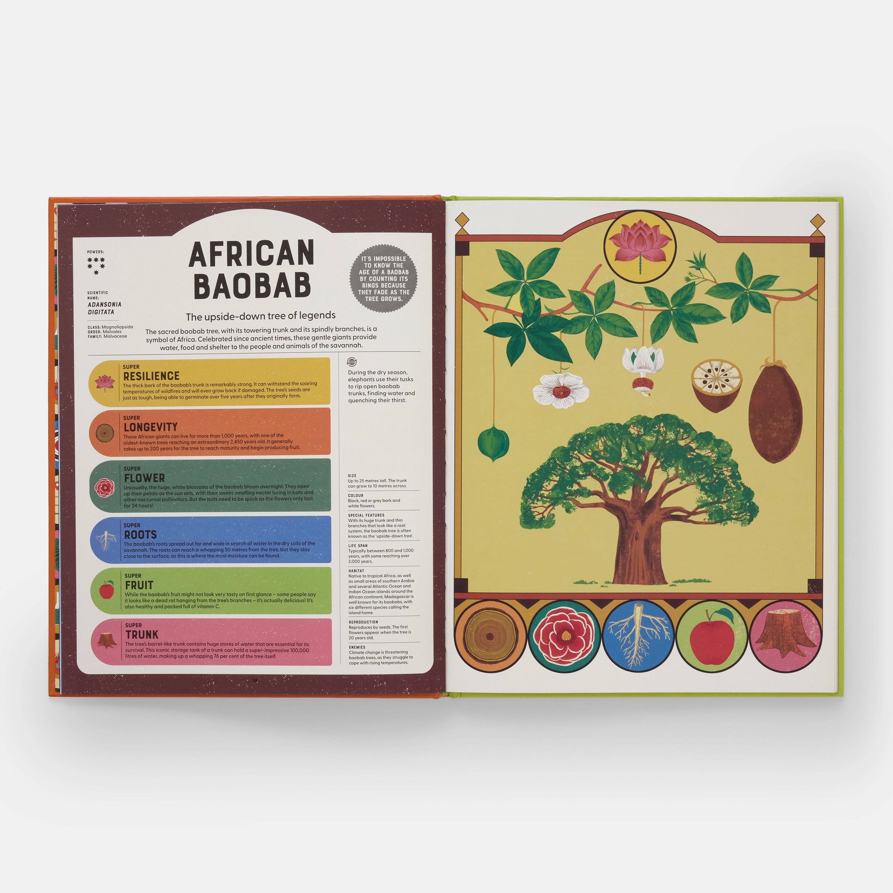 This stylish and informative non-fiction book features 22 incredible species of flora, each presented with a stunning visual portrait, a fun ‘hero’ name, fascinating facts about the unique skills they use to survive and thrive, and key information about their habitats and enemies.