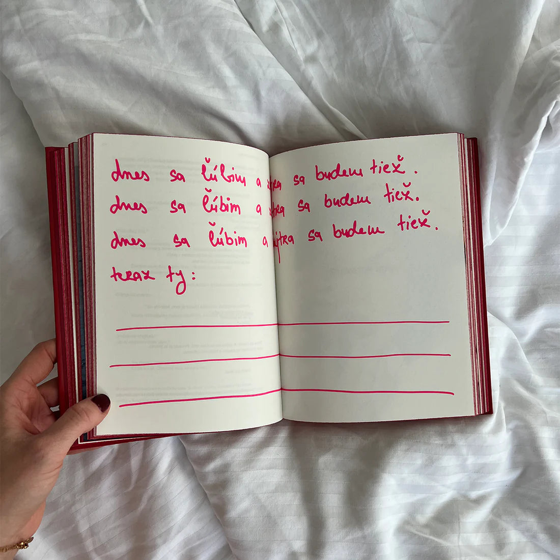 teksty wzbogacają moje pisane pamiętniki, zdjęcia z dzieciństwa, zdjęcia z telefonu komórkowego i zdjęcia wspaniałego Jakuba Gulyása, które robiliśmy razem przez te pięć lat, głównie w jego salonie. Przejrzałem swój egzemplarz przed wydrukowaniem i napisałem notatki różowym markerem, który w końcu w nim zostawiliśmy.