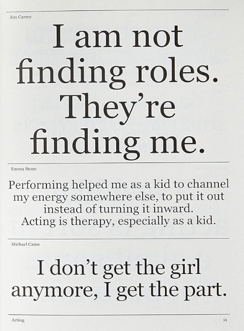 W ciągu ostatniej dekady The Talks przeprowadził ponad 500 wywiadów z wizjonerami kultury – pouczających rozmów z artystami, aktorami, reżyserami, szefami kuchni, projektantami mody, architektami, autorami, muzykami i sportowcami. Na potrzeby tej książki założyciele The Talks, Sven Schumann i Johannes Bonke, wybrali najlepsze cytaty z tych rozmów i ułożyli je według kategorii – w tym aktorstwo, rady, wiek, uroda, kreatywność, inspiracja, miłość, pieniądze, natura, bunt i nie tylko . Rezultat: dynamiczne i wnikliwe spojrzenie na życie i umysły twórczych głosów naszych czasów.