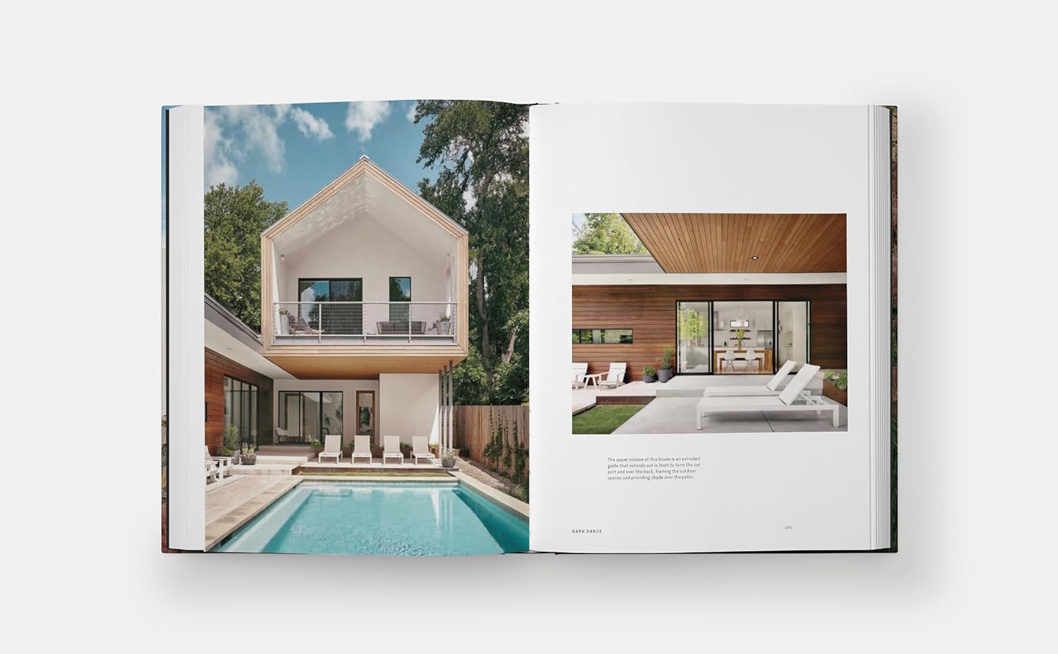 Twenty houses are included from across the state, with examples in major urban centers like Dallas and Austin and in suburban and rural areas, including a number in the evocative Hill Country.