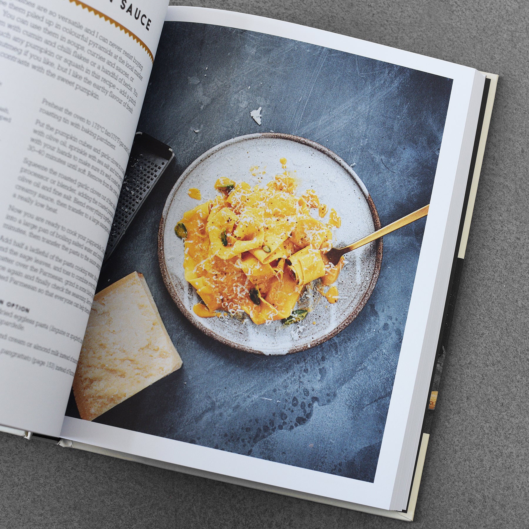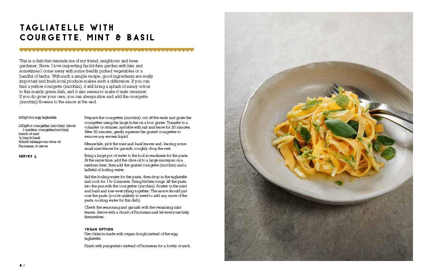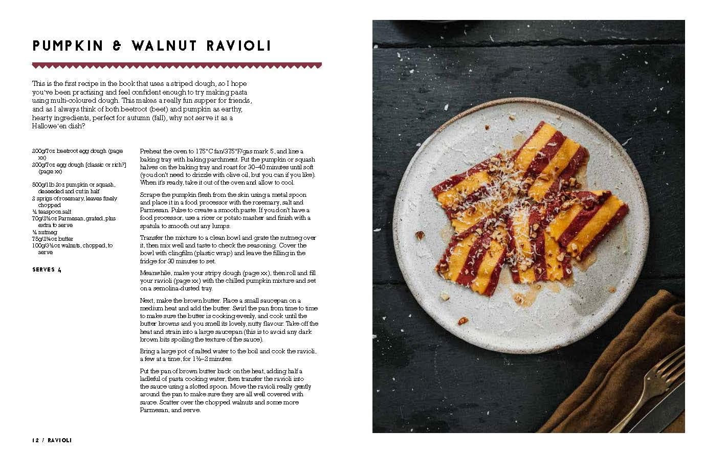 Teraz w The Pasta Man Mateo po raz pierwszy odkrywa, w jaki sposób i Ty możesz stworzyć jego piękne dzieła. Zaczynając od klasycznego złotego ciasta, poprzez sekcje „instruktażowe” prowadzące Cię przez każdy kształt i efekt, od plam i pasków (przy użyciu całkowicie naturalnych składników), arkuszy lasagne i pappardelle, poduszki ravioli, tortellini i inne wspaniałe makarony z nadzieniem, następnie oferuje 40 przepisów na pyszne sosy i kolacje, w których możesz zaprezentować swój delikatnie wykonany makaron.