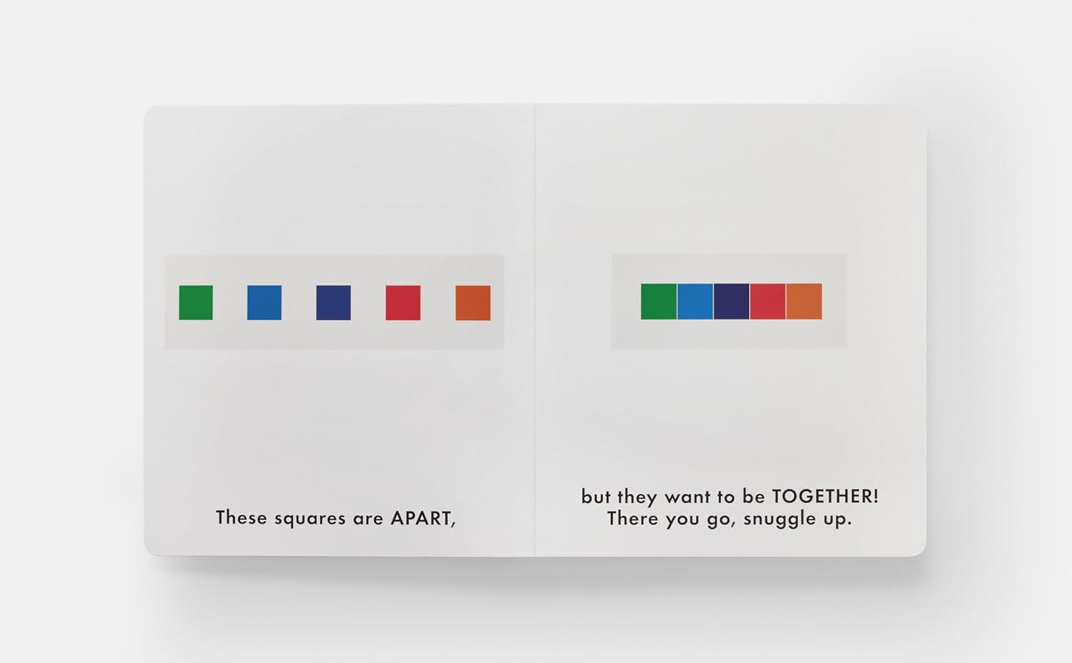 Up, Down & Other Opposites pairs different combinations of Ellsworth Kelly’s paintings and sculptures to teach the youngest readers all about the concept of opposites. The differences between pairs of artworks range from ‘together / apart’ to ‘vertical / horizontal’, from ‘full / empty’ to ‘front / back’ [of a canvas!], forming both an expected and an unexpected visual vocabulary. Created in partnership with the Ellsworth Kelly Foundation, the book includes some of Kelly’s most famous works, as well as some of his lesser-known pieces, creating both diversity and playful surprises.
