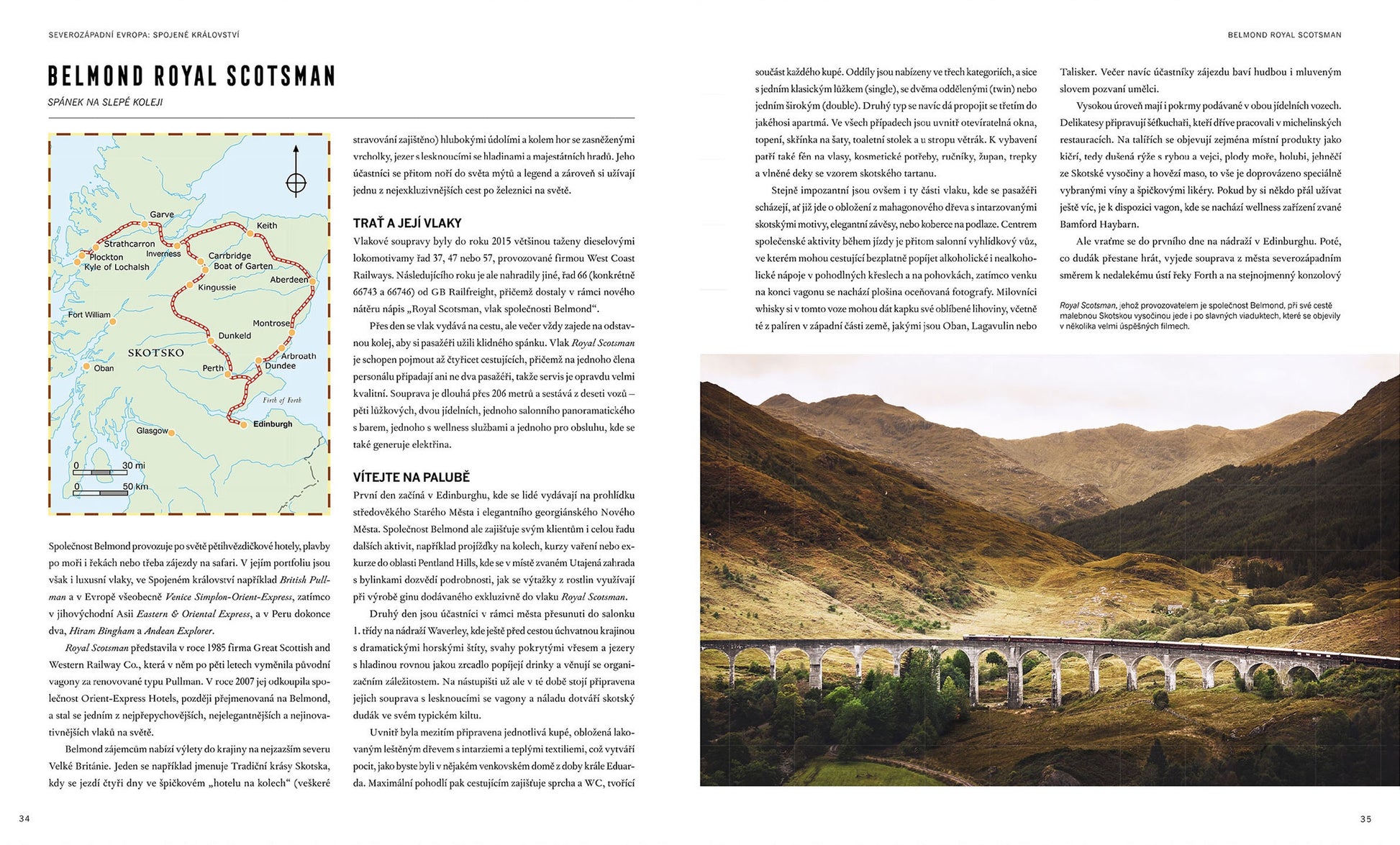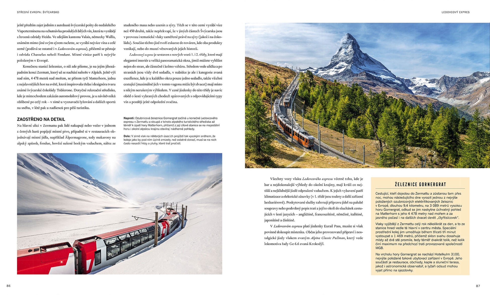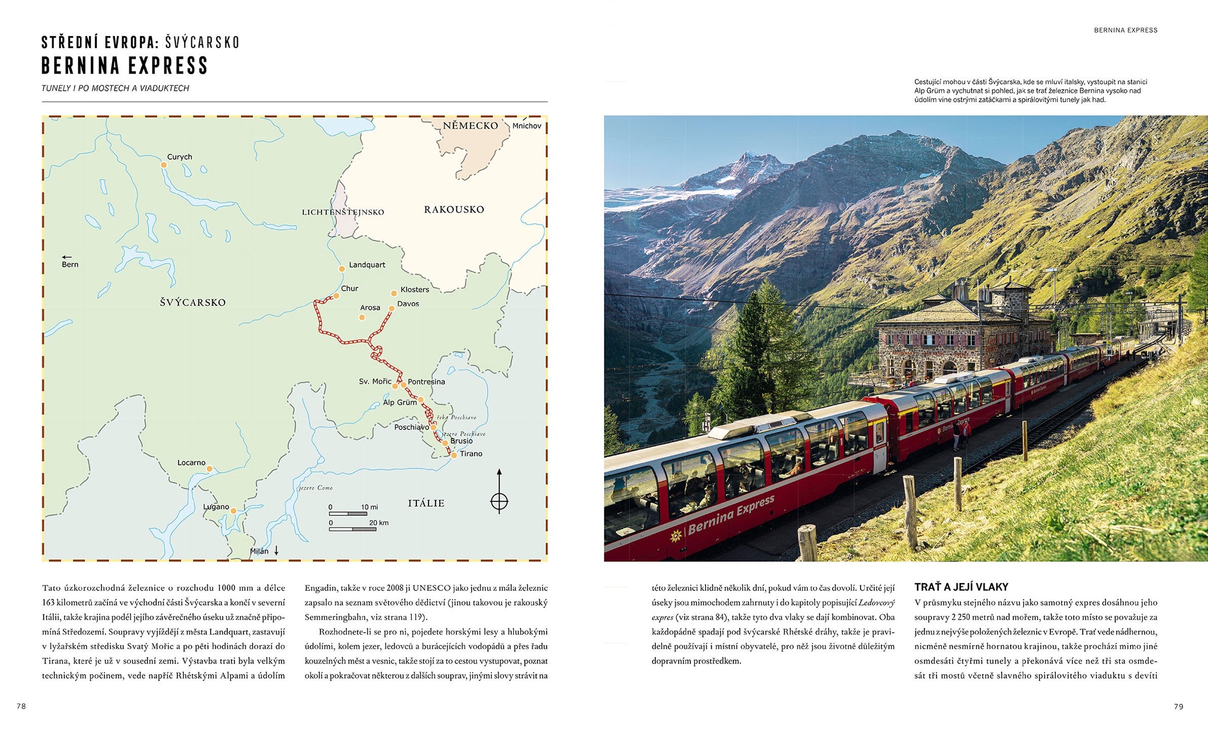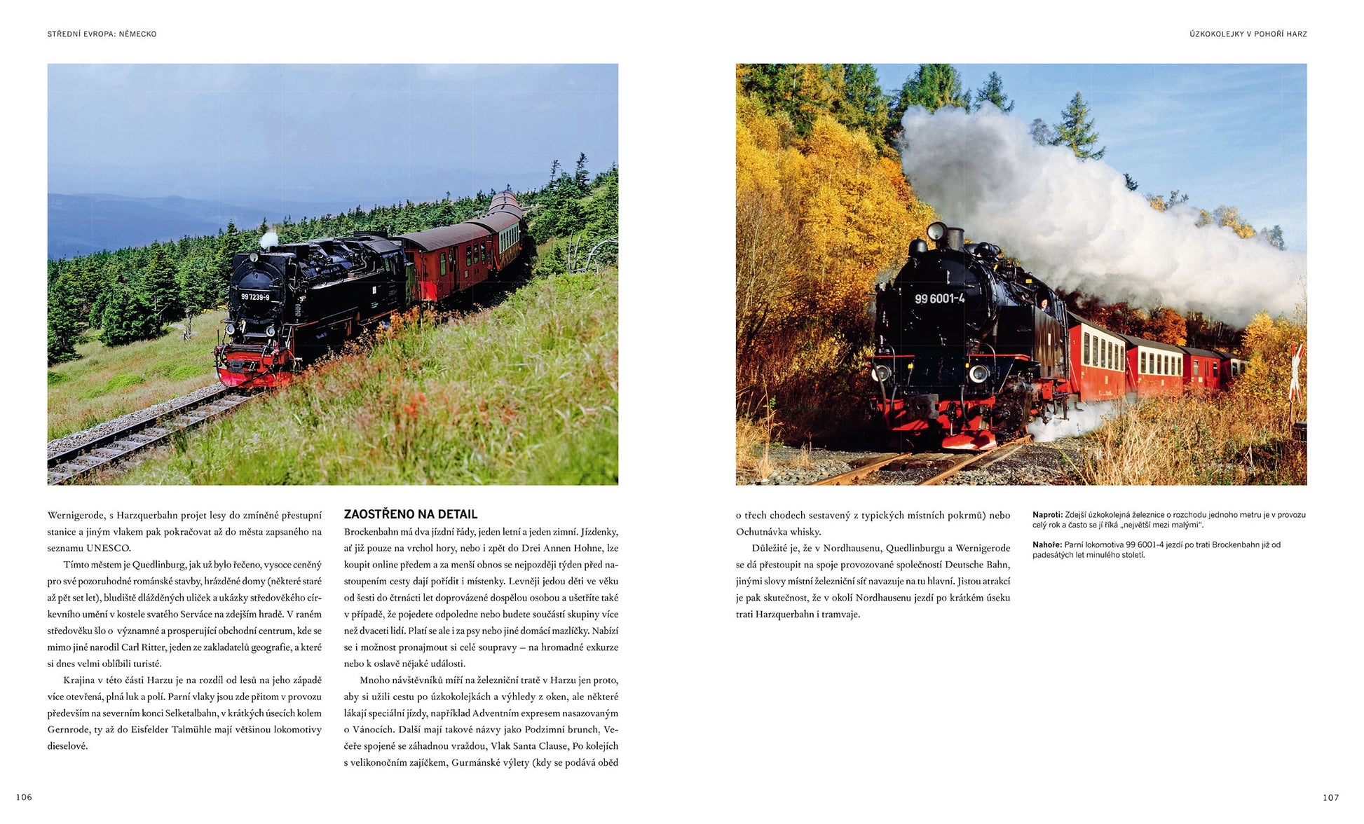 Každá trasa zahrnuje historii, technické detaily o trati a jejích vlacích, památky a výletní cíle, které byste neměli minout. Užitečné tipy doplňují nádherné fotografie vlaků, krajiny a turistických zajímavostí, které ocení každý cestovatel - ať už se na cestu vydáte, nebo se spokojíte se čtením v pohodlí domova.