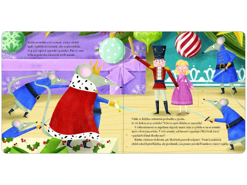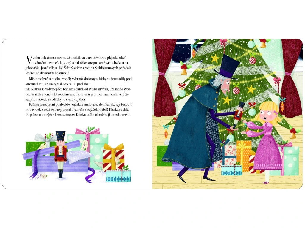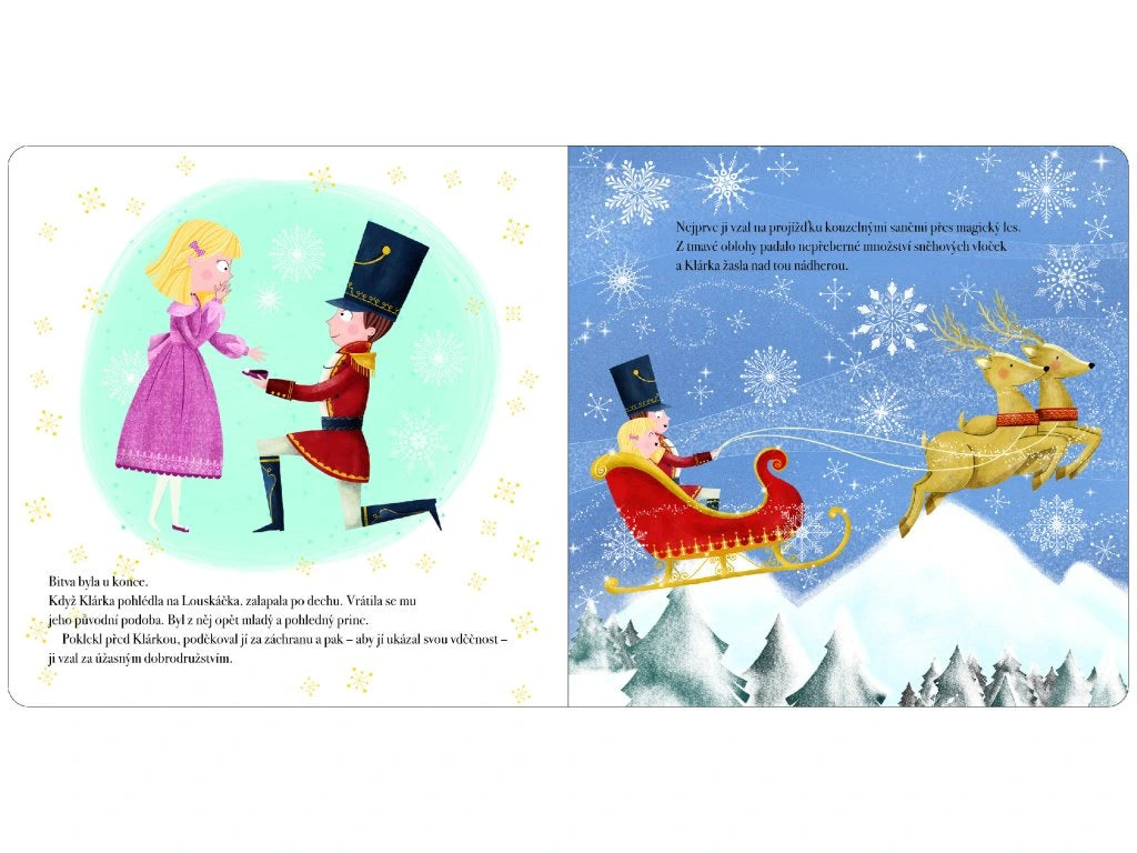 Nechte se společně s dětmi okouzlit vánočním příběhem o malé Klárce a statečném Louskáčkovi. Když Klárka na Štědrý den dostane od svého strýčka, úžasného výrobce hraček, dřevěný louskáček ve tvaru vojáčka, zamiluje si ho na první pohled. Ale co se stane, když přijde noc? Jedno neskutečné dobrodružství na Klárku právě čeká. Buďte svědky boje s Myším králem či výpravy do Království sladkostí. Tento již tradiční vánoční příběh doplněný měkkým okénkem s třpytivými vločkami je jako stvořený pro dlouhé zimní večery.
