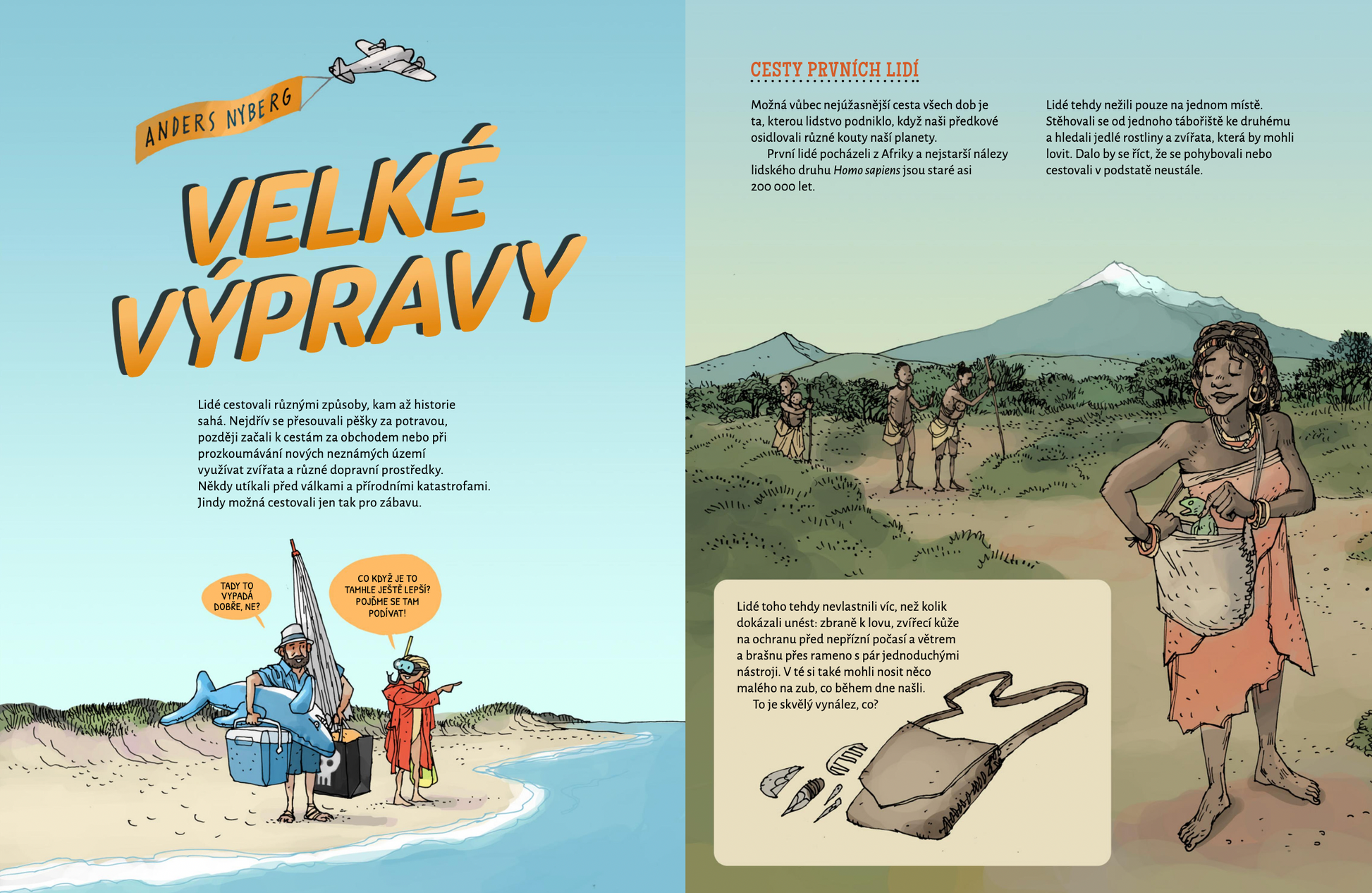 Obrázková kniha vzrušujících faktů o lidské zvídavosti a touze vidět a prozkoumat svět mapuje velké výpravy lidí, od pravěké migrace přes vzrušující expedice na póly, objevné cesty všemi možnými dopravními prostředky, až po vesmírné cesty budoucnosti.