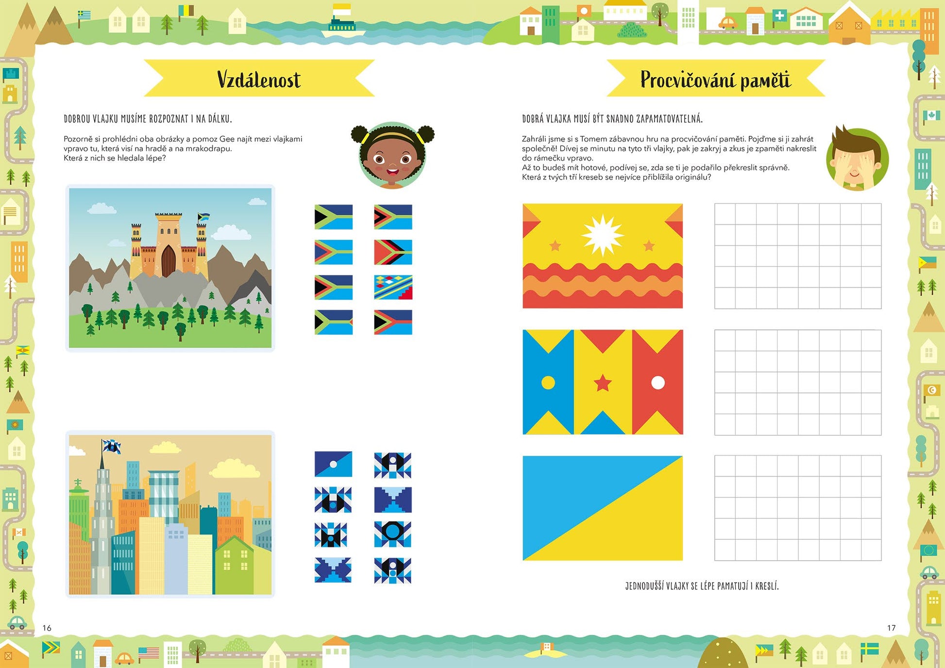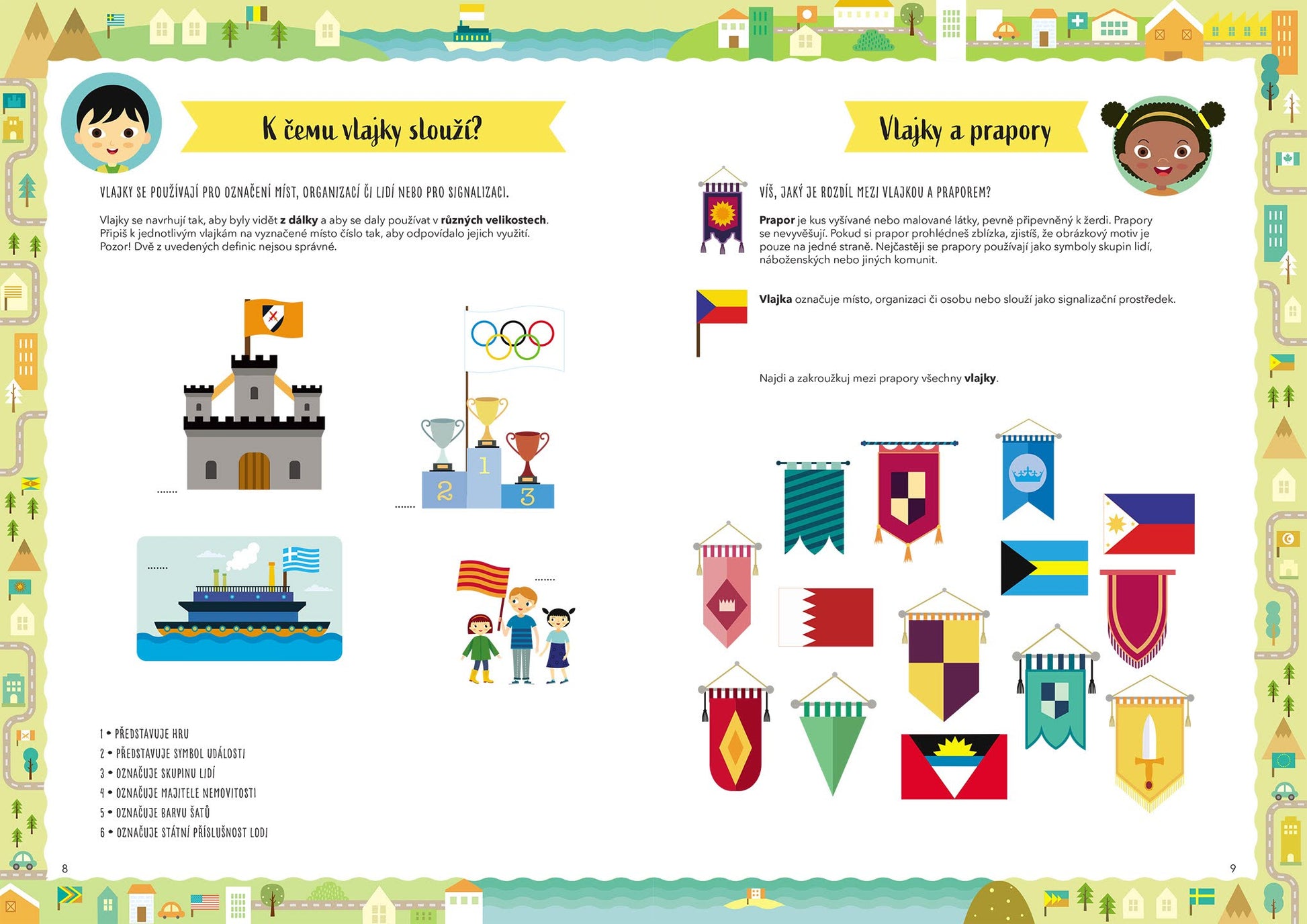 Geografia bada także flagi, które są symbolem na przykład państwa, miasta, organizacji lub grupy lub służą jako sygnały. W książce dowiesz się ciekawych (a może nawet zaskakujących) informacji ze świata flag, czyli weksylologii. Jeśli dobrze się wszystkiego nauczysz i zapamiętasz razem z uczniami Geą, Tomem i Benem, który jest miłośnikiem flagi, na koniec otrzymasz wstążkę młodego weksylologa. Co daje Ci książka? Dowiesz się, jakie są główne zasady projektowania flagi i jak uniknąć błędów, jaka jest różnica między flagą a chorągiewką, jak nazywają się części flagi, przetestujesz swoją pamięć przy przerysowywaniu flag, będziesz zrozumiesz symbole na flagach i ich ukryte znaczenie, nauczysz się alfabetu międzynarodowej flagi morskiej... Z pewnością spodoba ci się gra, w której musisz odgadnąć flagę, lub gra, w której rzucasz kolorową kostką (możesz ją zrobić z wyprzedzeniem), flaga sudoku lub pexe. Przykleisz naklejki lub zaprojektujesz szaloną flagę, która łamie wszelkie zasady weksylologii.