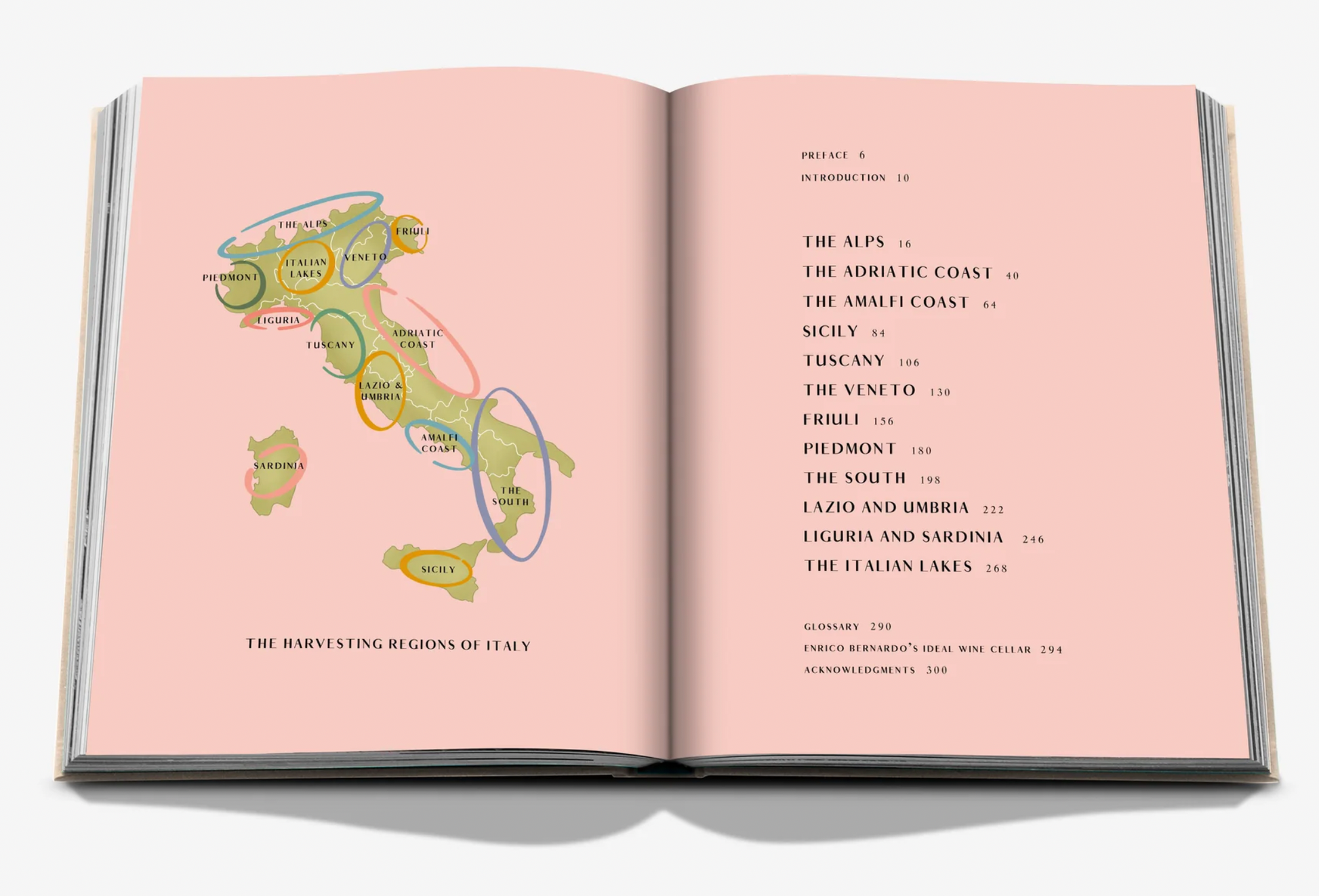 Italy’s wines reflect its history and culture. Its winemaking traditions are richly nuanced, with thousands of small terroirs and vineyards whose varietals, appellations, and soils appear ever more colorfully varied the better you get to know them. Some of Italy’s wines are legendary, whether it is a twenty-year-old Trebbiano d’Abruzzo and its smoky minerality or a fifty-year-old Barolo or Brunello di Montalcino. Traveling the wine routes of Italy is never monotonous: each winegrowing region has its own flavors, its own light.