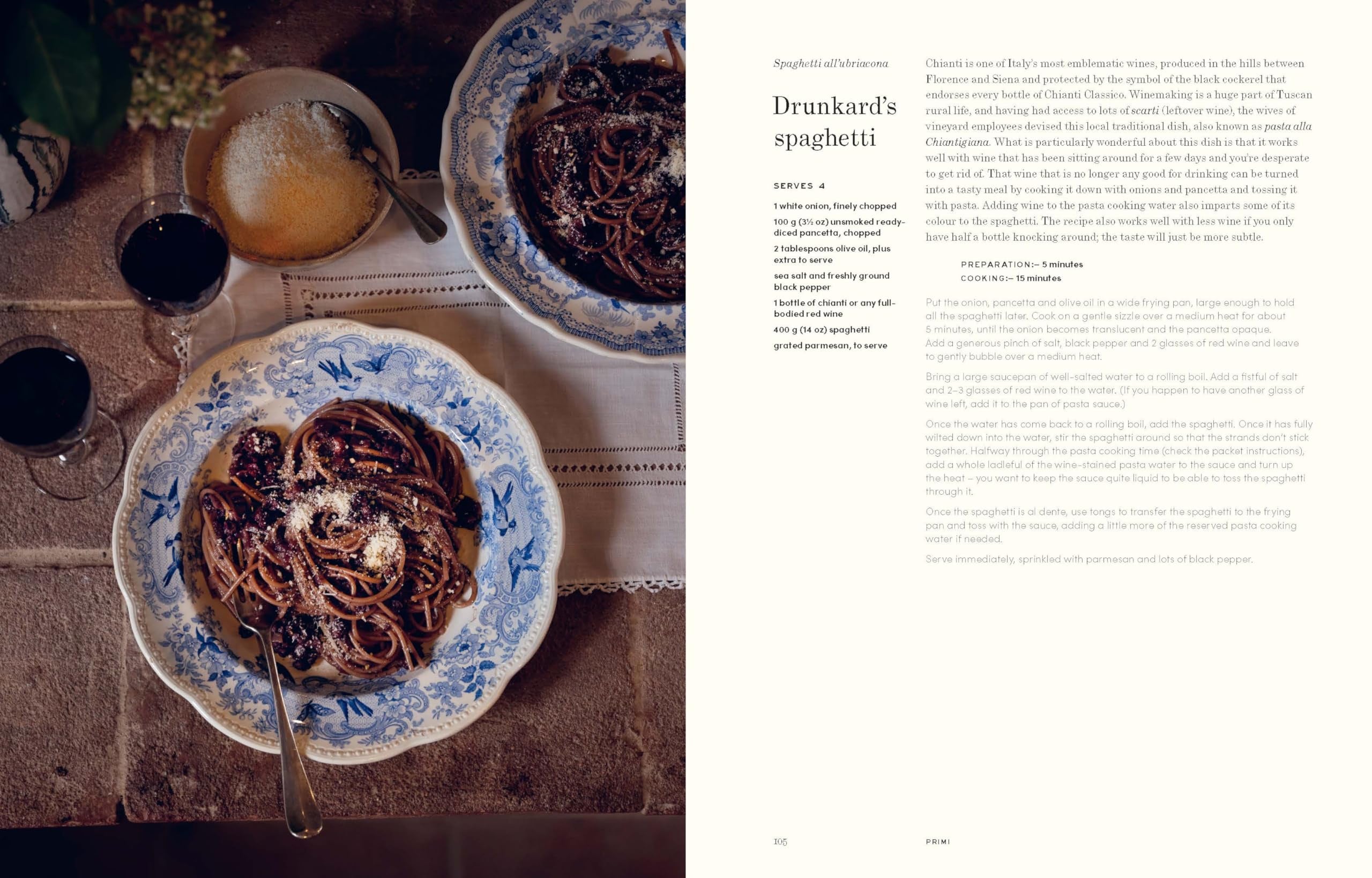 The book is filled with an array of hyper-local, traditional recipes for the home cook: from antipasti, zuppe – thick, hearty Tuscan soups – and brodo, brothy concoctions that bring comfort on colder days, to rustic pasta, rice and secondi – meat and vegetable mains that celebrate the season.