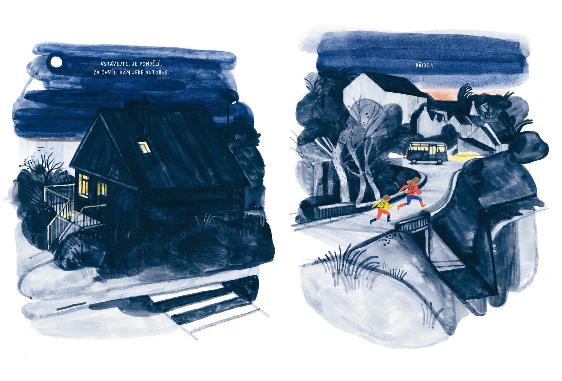Dvěma sourozencům ujede ráno autobus do školy a díky tomu prožijí neobyčejný den. Vypůjčí si malou loďku a plaví se přes zátoku, courají přístavem, vylezou na útes a dokonce se nazí vykoupou ve studeném moři. Výprava plná dobrodružství, přerušovaná hádkami a usmiřováním, končí až se západem slunce. Kniha zachycuje poetickou atmosférou malé rybářské vesnice plné zářivých barev. Dětskýma očima objevujeme svobodu a krásu skrytou v divoké přírodě i na opuštěných a docela všedních místech.