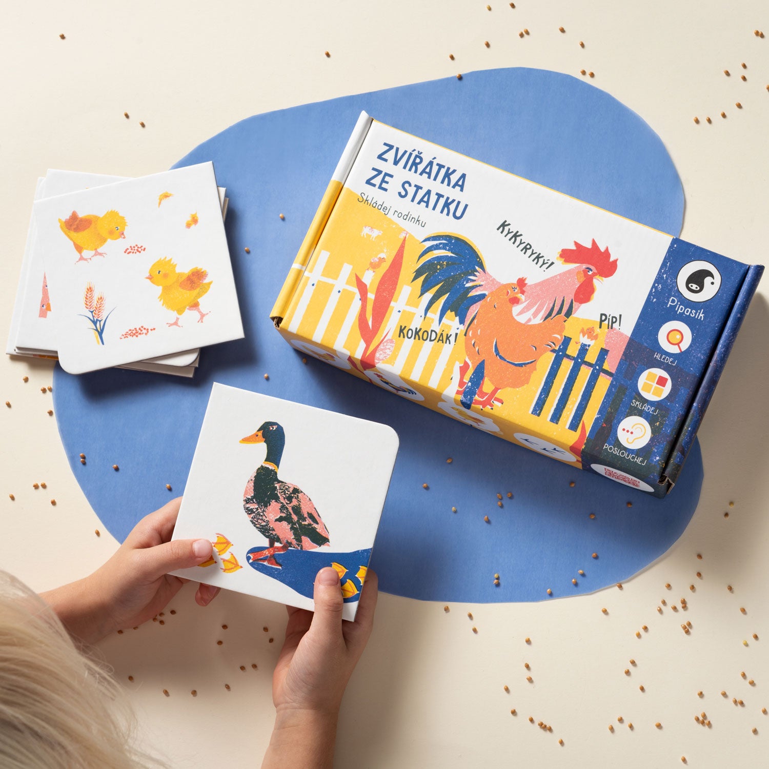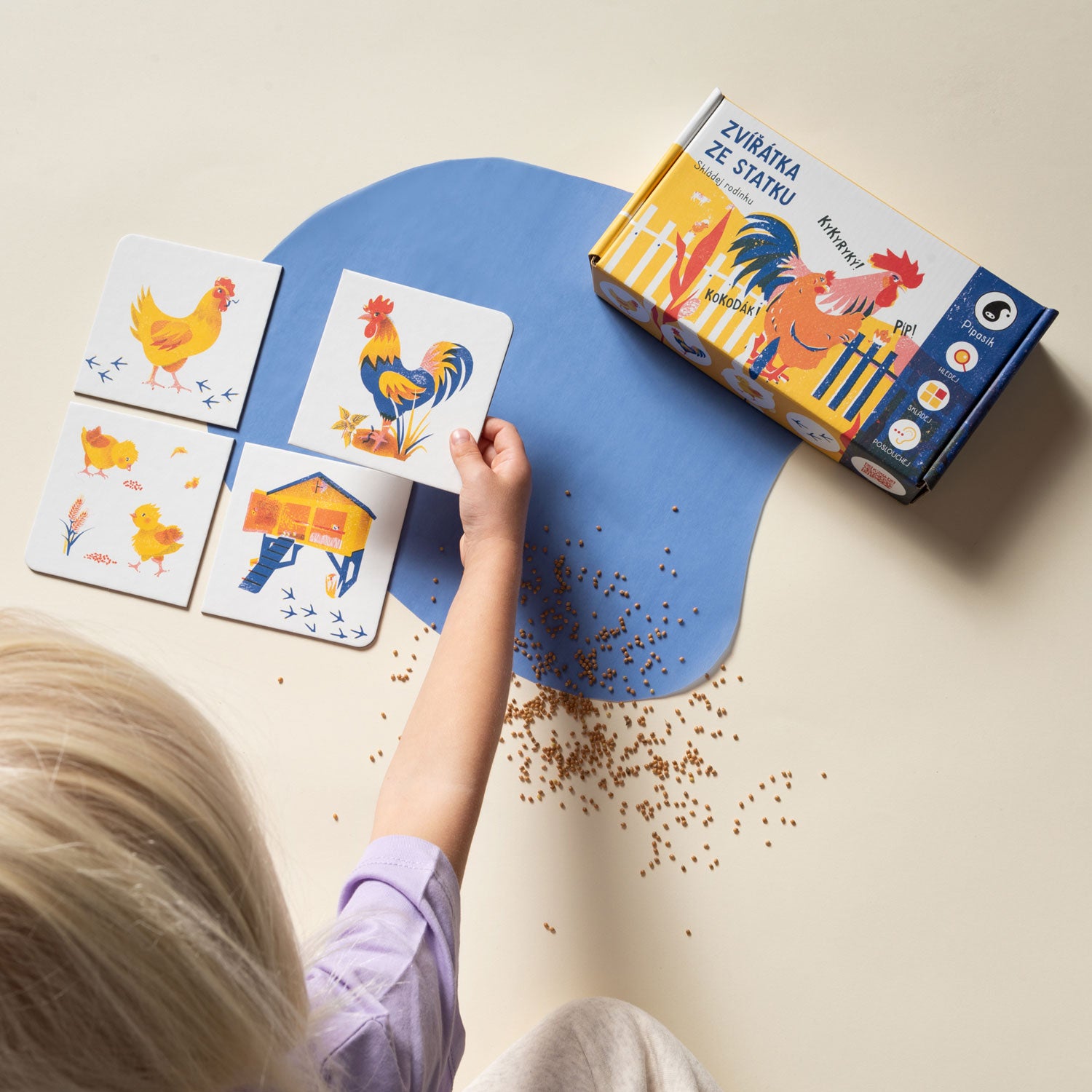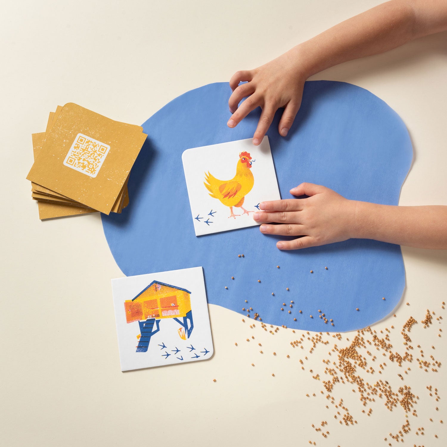Interaktivní hra „Zvířátka ze statku“ je vzdělávací hra určená pro nejmenší děti, která je zavede do světa domácích zvířat. Prostřednictvím edukativních karet se naučí rozpoznávat, jak vypadá samice, samec a mládě. Pomocí QR kódů objeví, jaké zvuky zvířata vydávají. Hra podporuje rozvoj slovní zásoby, jemné motoriky a zvědavosti. Zároveň přibližuje dětem každodenní život na venkově. Ideální pro rodiče a pedagogy, kteří chtějí své děti zapojit do zábavného objevování světa kolem nás.