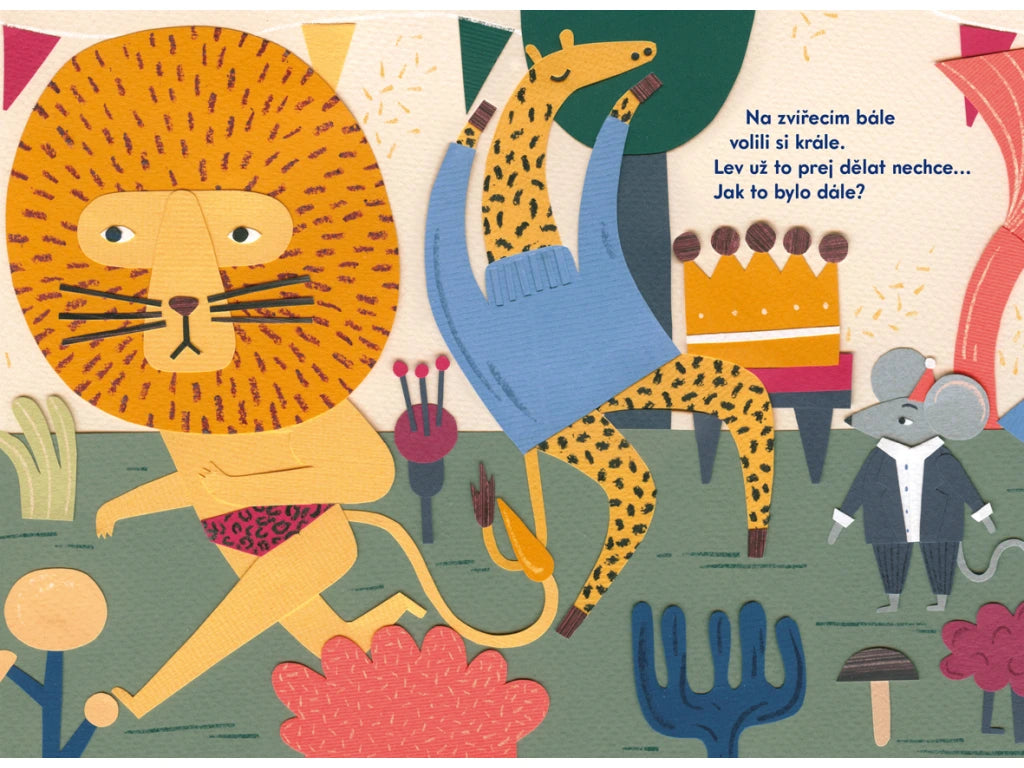 V tomto 12ti stránkovém leporelu se děti setkávají s ostatními zvířaty – od lemuřích skoků přes mývala až po emu a slona. Příběh vzniká kolem zvířecího bálu, kde si zvířata volí svého krále a řeší, kdo je pro tuhle roli nejvhodnější – s lehkostí, humorem a rytmem, který podporuje u dětí zapojení i repetici.